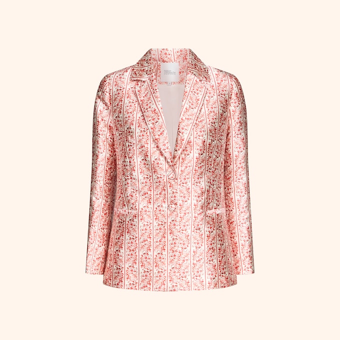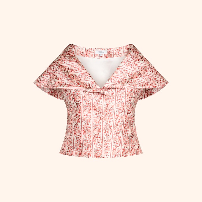 Pour accompagner la veste ou se porter seul, ce pantalon en satin rouge propose une ligne élancée, légèrement évasée en bas. La taille allonge la silhouette et structure la tenue. Le motif rouge fleuri a été entièrement dessiné à la main. Le tissu combine tenue et fluidité, ce qui permet de le porter aussi bien avec des sandales qu’avec des talons. Il peut être associé à une chemise blanche et la veste assortie pour créer un ensemble affirmé. Comme toutes les créations issues de la collaboration entre Tatiana de Nicolay et Le Bon Marché Rive Gauche, ce pantalon est proposé en édition limitée pour le Printemps-Été 2026, exclusivement au Grand Magasin.