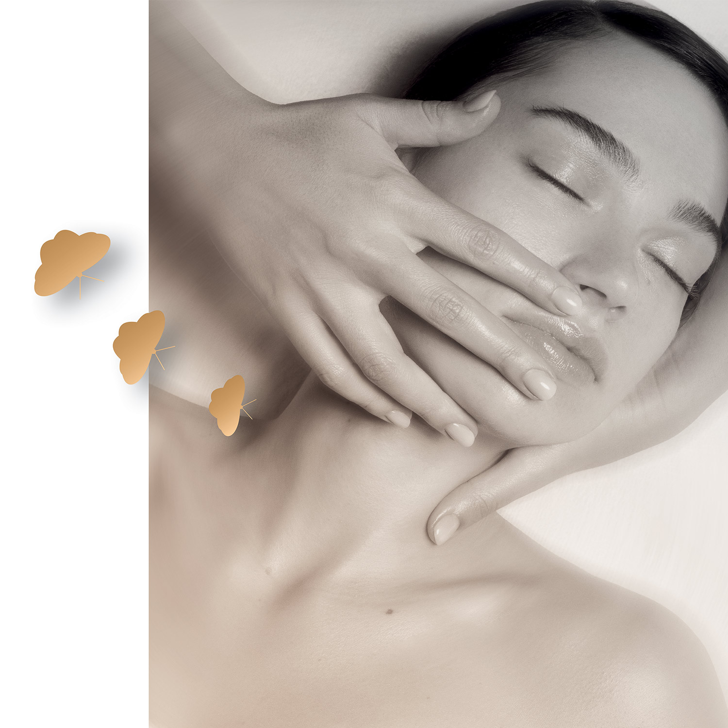 Structuré autour d’une gestuelle signature lors de l’application des produits, le mouvement papillon est reconnaissable entre tous. Agencé tel une chorégraphie contemporaine, il accompagne la métamorphose de la peau vers sa plus belle expression : une peau visiblement transformée, lumineuse et repulpée.