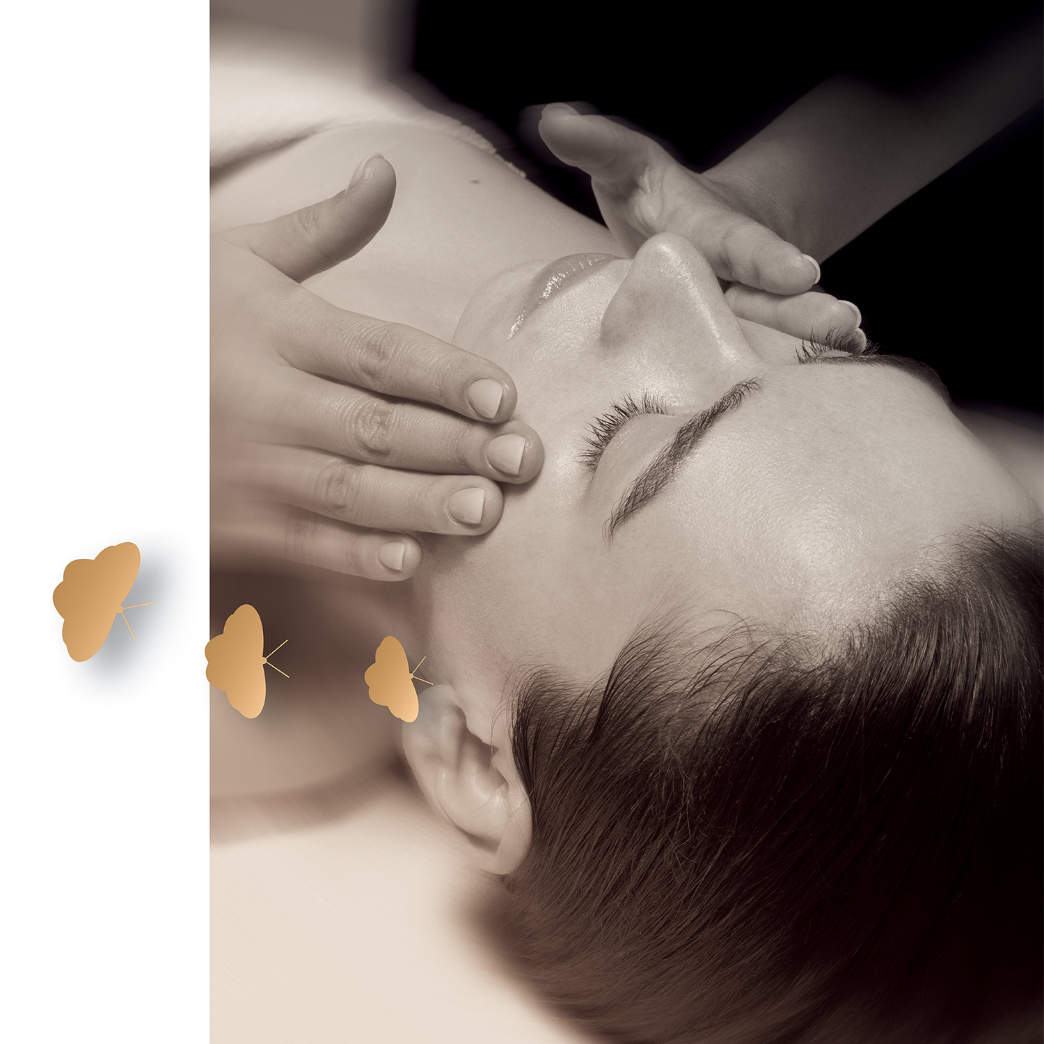Ce soin se concentre sur la réflexologie faciale et élimine les zones d'ombre et de tache. Le teint apparaît immédiatement éclatant et uniforme.