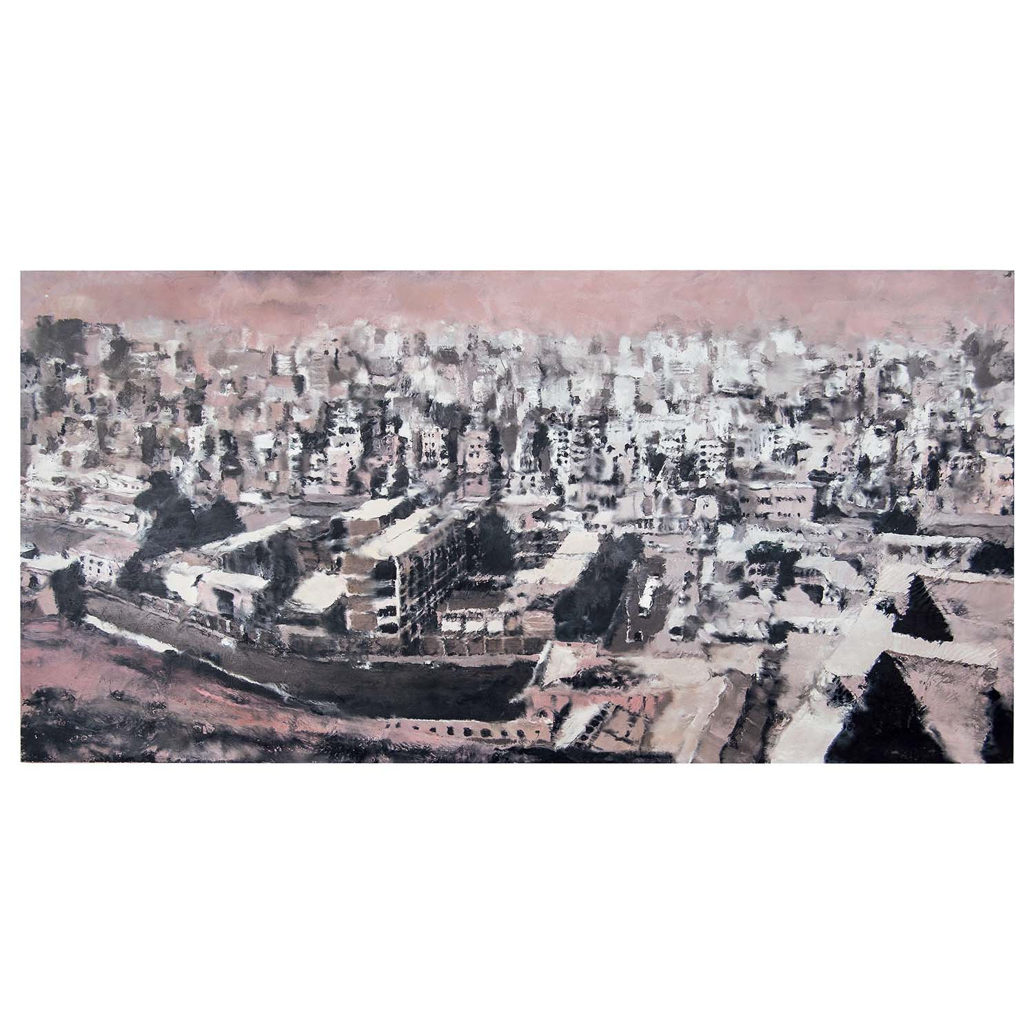 Philippe Cognée développe une technique singulière mêlant photographie, vidéo et peinture à l’encaustique. Il explique sa technique : « J’ai travaillé à la cire et trouvé cette idée de repasser les tableaux sur un film déposé, ce qui faisait fondre la surface de la peinture. Ça lui donnait un aspect très lisse, qui rejoignait à nouveau la photographie qui l’avait inspirée. Le flou obtenu déplaçait l’image dans une autre réalité, celle de la peinture ». Son œuvre Le Caire, représente une vue de la capitale égyptienne et fait partie d’une série sur les villes. Son atmosphère polluée est subtilement traduite par un camaïeu de gris.