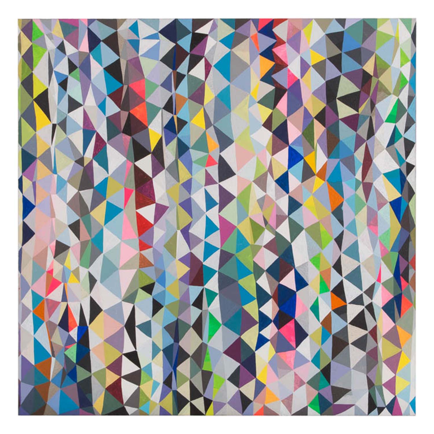 L’œuvre de Gary Lang se caractérise par une superposition de motifs géométriques de couleurs vives et le travail d’effets colorés et de saturations. Diamond Painting n°4 fait partie d’une série réalisée dans les années 1990. Selon l’artiste : « Le processus est en fin de compte une méditation axée sur le plaisir sur l'accumulation et l'organisation de l'énergie, tout en étudiant le potentiel de la couleur ». Gary Lang démultiplie la présence de triangles qui envahissent la toile formant une variation de polygones à l’image des facettes d’un diamant.