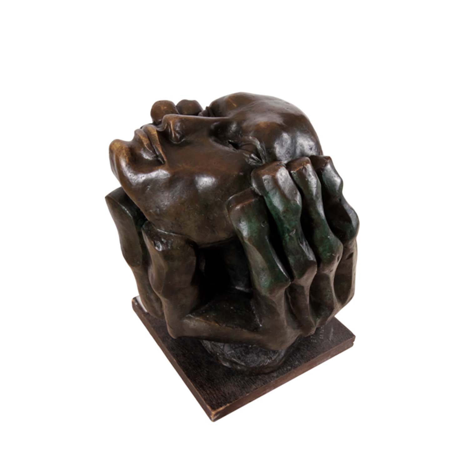 Tout au long de sa carrière, Etienne-Martin réalise de nombreux portraits sculptés qui sont le fruit de rencontres et de souvenirs. Cette Tête aux mains, reprend les traits d’Elsa Amman, entrevue à Zurich en 1950. Selon l’artiste : « Un visage, c’est une architecture extraordinaire, c’est tellement extraordinaire que ce n’est jamais fini » il ajoute « quand vous faites une sculpture, il y a toujours un côté de l’architecture. Si vous faîtes une tête, il y a aussi une architecture. L’architecture, c’est avant tout un monde poétique, imaginaire, avec tous ses arrière-plans ».