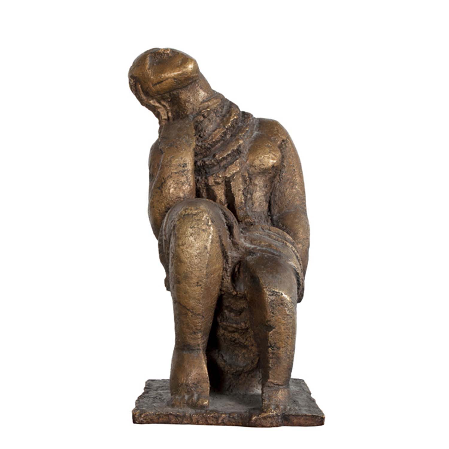 Ossip Zadkine commence à produire des sculptures en bronze dans les années 1930. Cette technique lui permet d’inventer des compositions plus complexes dans lesquelles il y introduit du mouvement. Son œuvre est « exprimée dans un langage sobre, méprisant toute tradition pompeuse et académique ». La Femme pensive, est une silhouette féminine qui fait écho aux œuvres précubistes de Pablo Picasso telles que Trois femmes (1921, MoMA) ou encore Femme et enfant au bord de la mer (1921, Chicago Art Institute).