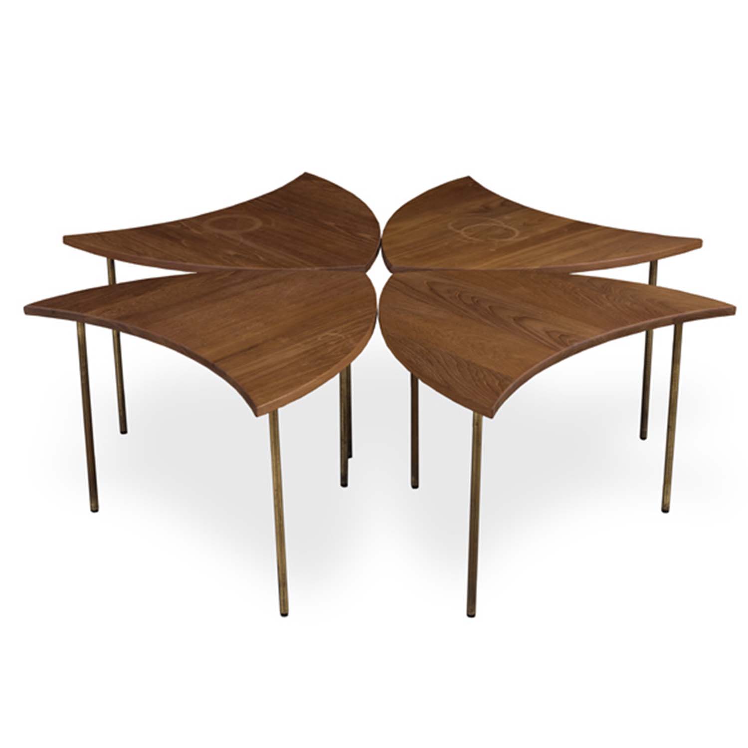 Peter Hvidt est un designer danois diplômé en architecture et ébénisterie. Il collabore pendant une trentaine d’années aux côtés du designer et architecte Orla Mølgaard-Nielsen dans la réalisation de plus de 250 pièces de mobilier et de nombreux bâtiments au sein de leur studio Hvidt & Mølgaard. Ces tables basses sont à l’image des réalisations qui les ont rendus célèbres. Ils imaginent un mobilier modulable, empilable et facilement démontable. Leurs formes triangulaires aux bords arrondis, rappelant des pétales, permettent de réaliser des juxtapositions et des ensembles aux formes originales qui s’ajustent à l’infini.