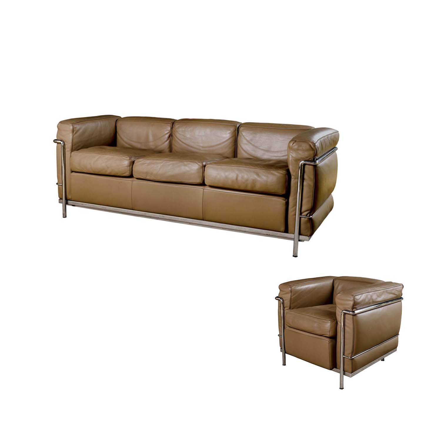 Les cousins suisses, Charles-Edouard dit Le Corbusier et Pierre Jeanneret éditent en 1926 le Manifeste « Cinq points vers une Nouvelle Architecture » qui théorisera leurs réalisations. A cette période, le Corbusier invite Charlotte Perriand à rejoindre leur agence afin de concevoir un ameublement moderne. Le trio présente en 1929 un ensemble de meubles au Salon d’automne qui se décline en chaises, tabourets et canapés composés de pièces tubulaires en acier. L’éditeur Cassina reprendra la fabrication de cette série iconique, devenue LC#, et qui réunit les caractéristiques du style international fondée sur des lignes géométriques claires et fonctionnelles.