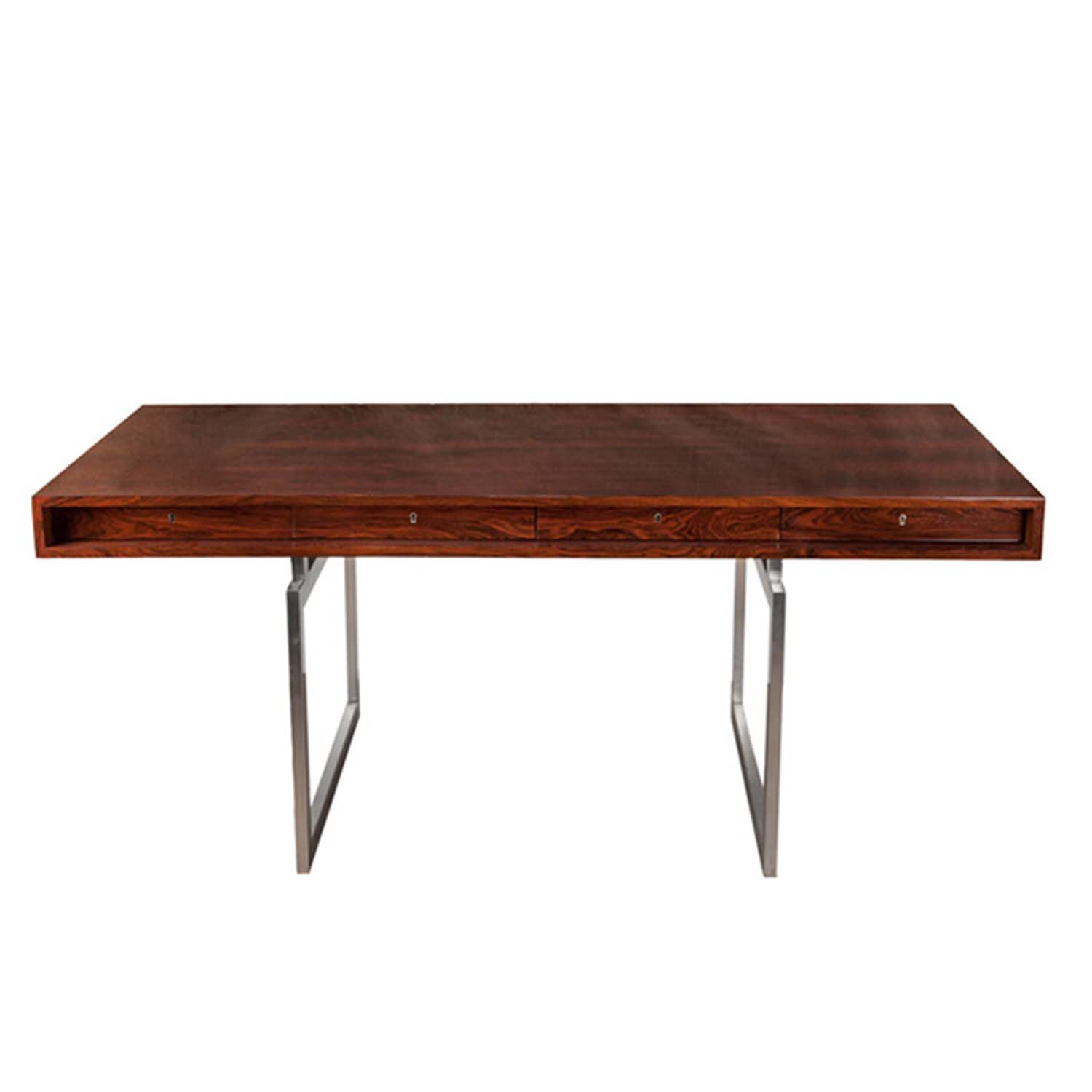 Le bureau 901 conçu pour le Massachusetts Institute of Technology se démarque par sa modularité et son allure moderniste influencée par l’école du Bauhaus. Bodil Kjær recherche l’épure dans l’équilibre des masses. La légère base chromée est constituée de fins modules rectangulaires qui contrastent avec la forte matérialité du plateau en palissandre. Quatre tiroirs en ceinture offrent des rangements discrets. Ce bureau est rendu célèbre par son apparition dans deux films de la série James Bond : Bons baisers de Russie et On ne vit que deux fois, on a également pu l’apercevoir sur les plateaux de télévision de la BBC.