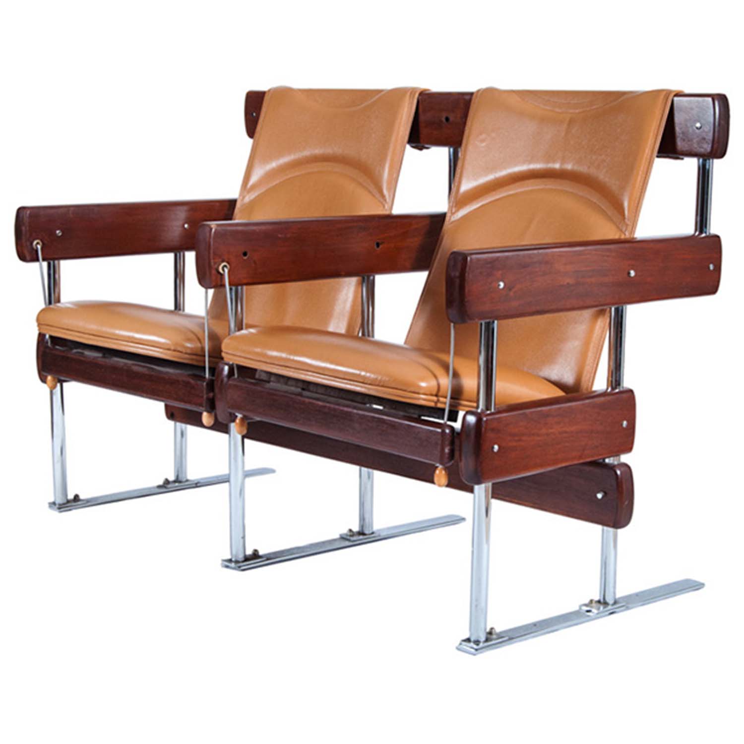 Chef de file du design brésilien, Sergio Rodrigues souhaite répondre aux critères de modernité initiés par l’Ecole du Bauhaus alliés à une tradition brésilienne. Il prône l’utilisation du bois et choisit des essences employées par les communautés autochtones du Brésil. La banquette conçue pour l’Auditorium de l’Institut des Architectes du Brésil, présente des lignes souples alliant beauté et confort. L’assise est dotée d’un mécanisme permettant au spectateur de se balancer au rythme de la musique.