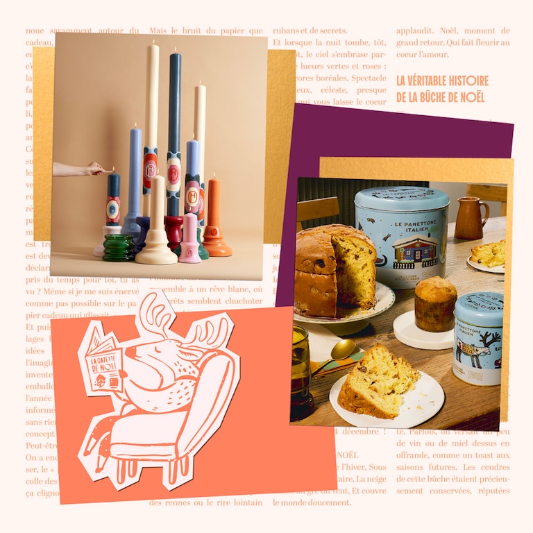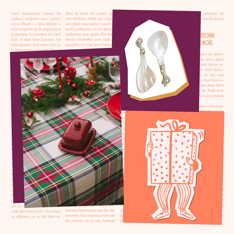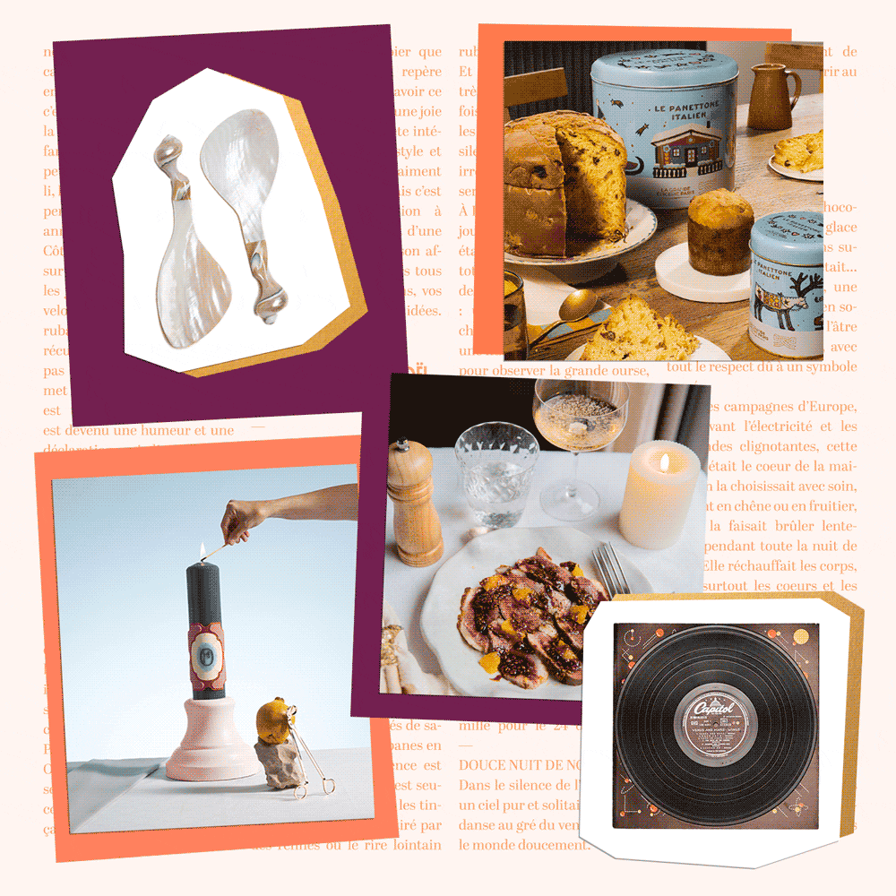 Pour dresser la parfaite table de Noël, rien de mieux qu’une aventure sensorielle — en réveillant les sens tout autant que l’appétit. Sur la table, une nappe Maison Dinette incontournable. Pour le menu, rendez-vous à La Grande Épicerie de Paris où une surprise pensée par Fragonard est à savourer aux côtés de la magnifique bûche de Noël. Côté décoration, misez sur des créations inédites Gohar World et sur les bougies sculpturales et colorées Hoogeland. Et dans les oreilles, le son d’un vinyle collectionné par Big Smile Bazaar. Une table qui n’a décidément pas fini de faire la fête.