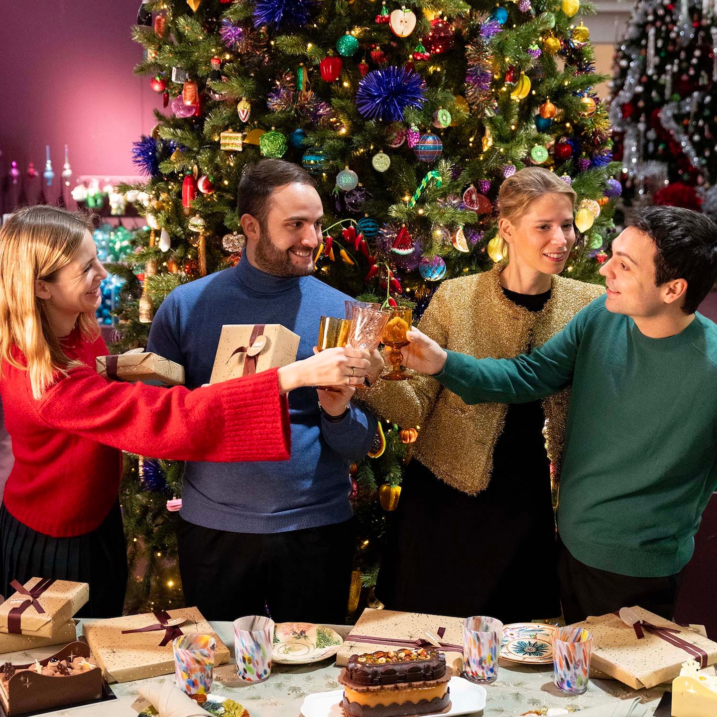 L’heure est à la fête au 24, rue de Sèvres ! Parés de leurs plus beaux atours, Helena, Laure, Thomas et Guillaume se sont prêtés au jeu du traditionnel Secret Santa. Experts Mode Femme et Mode Homme au Bon Marché Rive Gauche, les quatre collègues (et amis !) sont partis en quête du parfait cadeau à offrir à celle ou celui tiré au sort. Scrunchies is back, Maison Jaipur, Gift Shop, Mackie ou encore Rose Marie Bijou, chacun a fait preuve d’ingéniosité pour faire plaisir, et surtout sourire. Un beau moment de joie et de convivialité, immortalisé par La Gazette.
