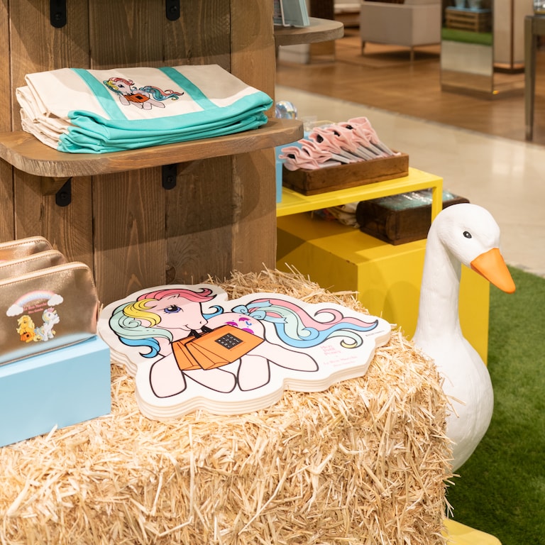 Pour l'exposition « Tous à la ferme ! », Le Bon Marché propose une collection d'accessoires, pièces lifestyle et prêt-à-porter. Inspirée de l’univers pop et coloré de Mon Petit Poney, cette capsule exclusive en édition limitée met à l’honneur des dessins originaux et des créations spécialement imaginées pour l’événement.