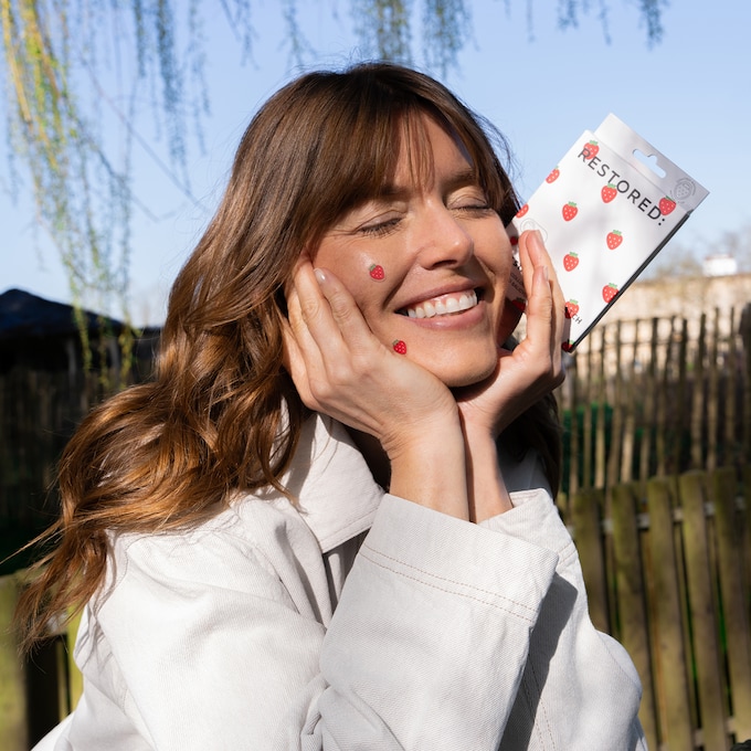 La ferme se fait aussi terrain de jeu. Avec Restored Skincare, les imperfections se traitent avec délicatesse et légèreté. Les patchs en forme de fraise transforment ce moment en un clin d’œil joyeux : un soin ciblé, efficace, qui rend l’instant presque ludique.