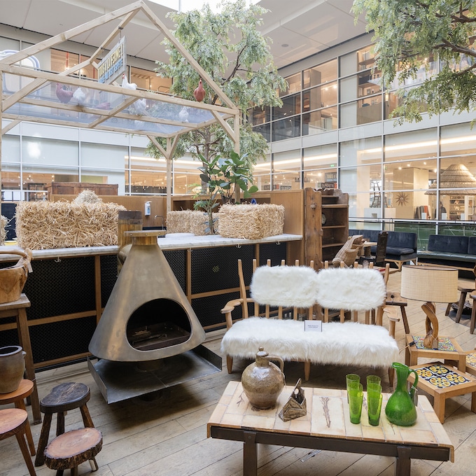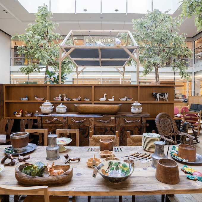 L’air frais de la campagne a gagné vos intérieurs : pendant l'exposition « Tous à la Ferme ! », les espaces Maison du Bon Marché Rive Gauche respirent l’authenticité et l’artisanat. Ici, un nouvel objet fait main. Là, un certain goût pour la seconde main. Des pièces au savoir-faire unique pour transformer les espaces du quotidien. Sur la table, assiettes et verres s’entrechoquent joyeusement. Sur les étagères, de quoi faire rougir les plus belles maisons. Le tout pour une ambiance délicieusement champêtre.