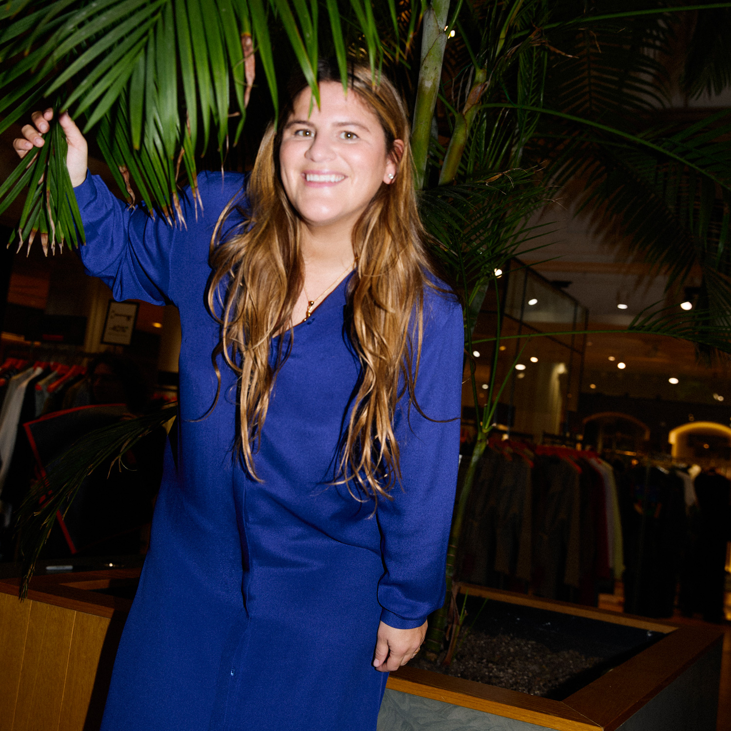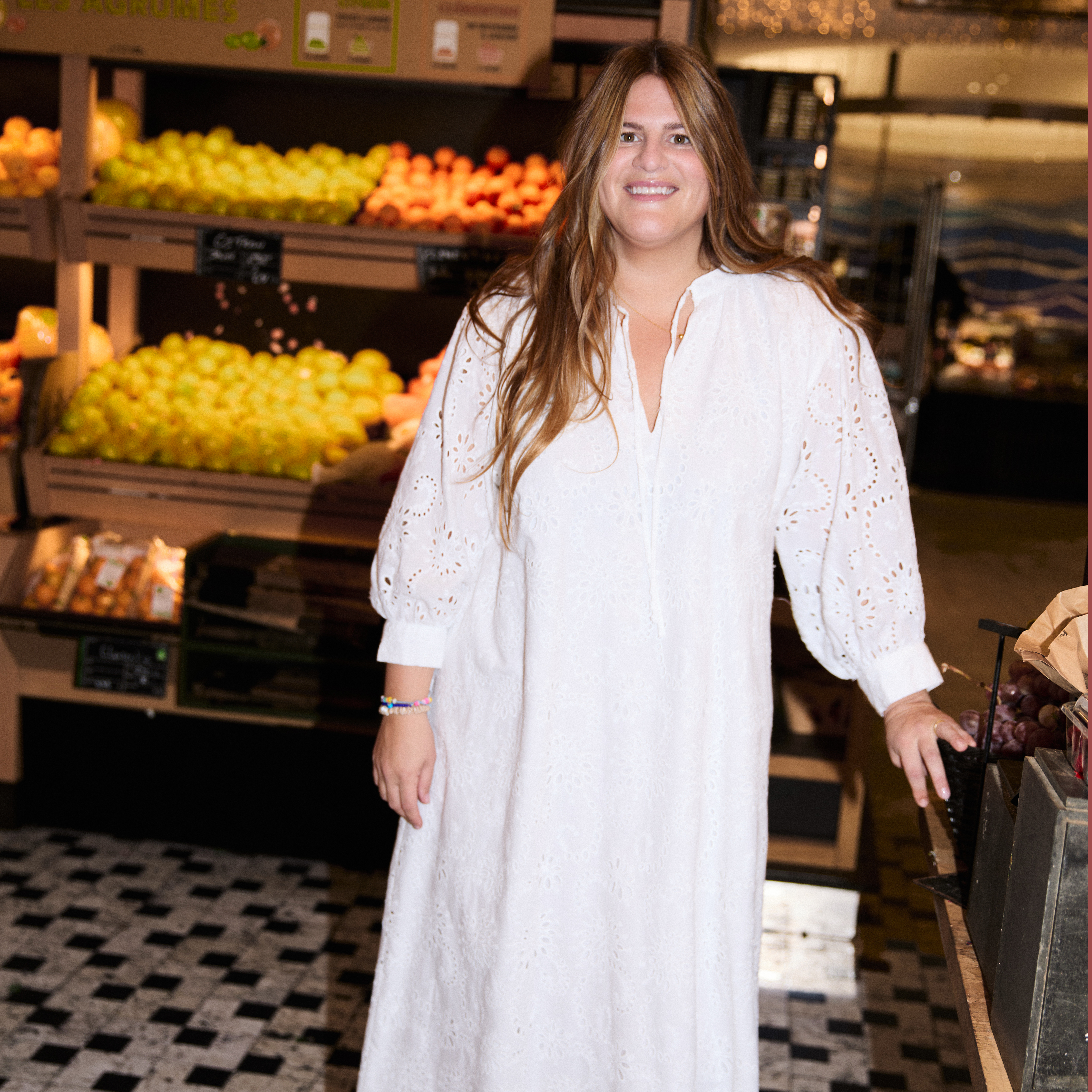 « Je suis mi-british, mi-française. Un duo culturel qui me donne à la fois un côté très jovial et un autre plus terre à terre [elle sourit]. Un peu comme Le Bon Marché finalement ! Un classicisme reconnaissable qui rencontre un fragment de boldness*, de fou, d’inattendu bienvenu. Je ne suis pas une grande influenceuse et je pense que le fait d’être cheffe d’entreprise, maman et de ne pas faire une taille 34 permet aux femmes de se reconnaître assez facilement en moi. Sans trop m’avancer, je pense que c’est aussi pour ces raisons que Le Bon Marché a souhaité cette collaboration. Créer une première collection cohérente avec les femmes d’aujourd’hui. »