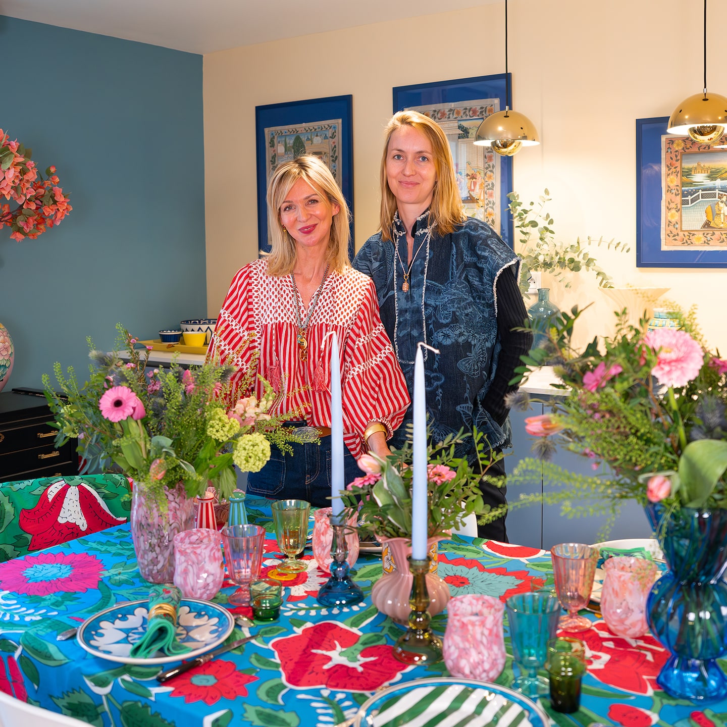 Caroline : Jennifer est l’une des rares personnes que je connaisse à avoir un sixième sens créatif. Elle sait d’emblée ce qui fonctionnera, avec quoi, comment. Et moi, je fonce avec elle ! Pour « La Maison Caroline », j’ai donc travaillé une collection très large de pièces estivales, du linge de table aux bijoux, du prêt-à-porter aux céramiques. Au sein de l’espace, on trouve un immense bar à bijoux pour essayer, toucher, s’amuser. Mais aussi une table à manger XXL. Je veux qu’on y ressente le pouvoir magique des couleurs, comme dans un festival. C’est toute une expérience.