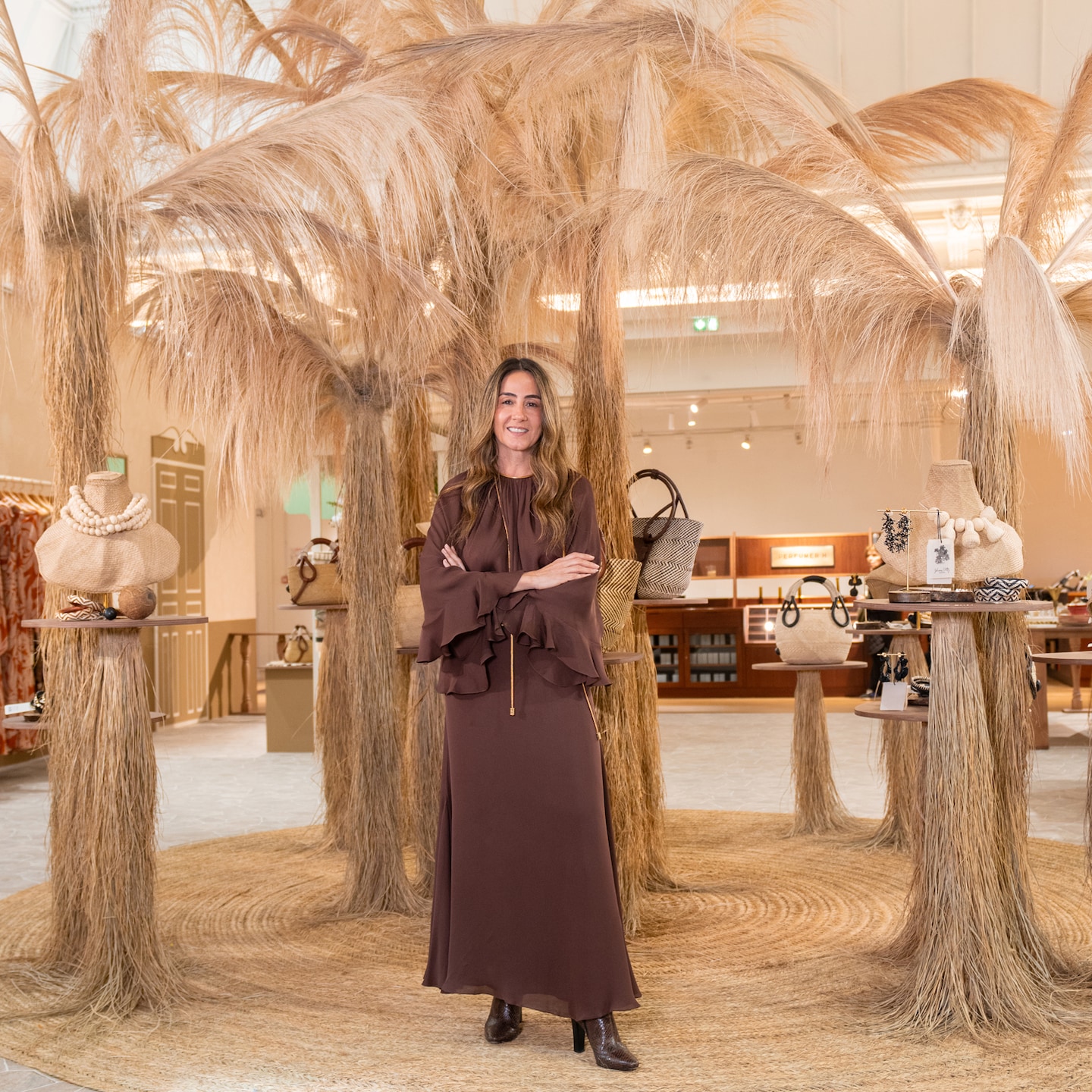 « La mode est pour moi une fête, un terrain de jeu où c’est toujours l’heure de la récréation. Une expression de soi joyeuse, libre et colorée. Autant d’adjectifs que j’essaie de raconter à travers chaque robe, chaque imprimé mais aussi, dans l’espace que je signe au Bon Marché Rive Gauche. J’ai installé rue de Sèvres, à Paris, une place de marché typiquement colombienne. La reproduction d’une plaza inspirée de tout ce qui constitue la richesse et la couleur de mon pays. Je me suis inspirée de Filandia, un petit village coloré du Quindío [ndlr : l’un des 32 départements de la Colombie] au cœur de la zone caféière ; des élancés palmiers de cire de la vallée de Cocora ; et des éclatantes places de Carthagène. On peut dire qu’au 24, rue de Sèvres, se contre le meilleur de la Colombie. »