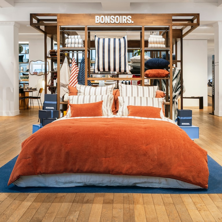 Nicolas Morschl : Dès le début, j'ai voulu remettre du plaisir dans l'achat d'un produit qui, à première vue, ne soulève pas les foules. Et surtout redonner de la valeur à ces gestes simples du quotidien : se glisser dans ses draps, attraper sa serviette après une douche… Mon père est architecte, et je crois qu’il y avait en moi quelque chose qui sommeillait, latent, et qui s’est révélé avec Bonsoirs. Le design et la maison ont toujours nourri nos discussions familiales, donc Bonsoirs porte forcément quelque chose d’intime. Nous avons commencé en digital, mais comme nos produits procurent une vraie sensation, ouvrir des espaces physiques est vite devenu évident pour permettre aux gens de toucher, comparer, ressentir. Se faire conseiller aussi. Nos clients sont — et ont toujours été — au centre de tout.