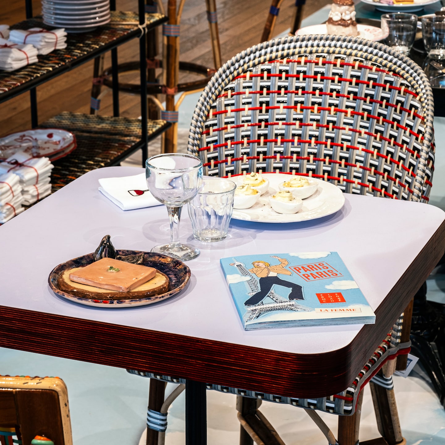 Au 1er étage, Waww La Table présente un espace inspiré par un moment passé au café de Flore à lire son journal.