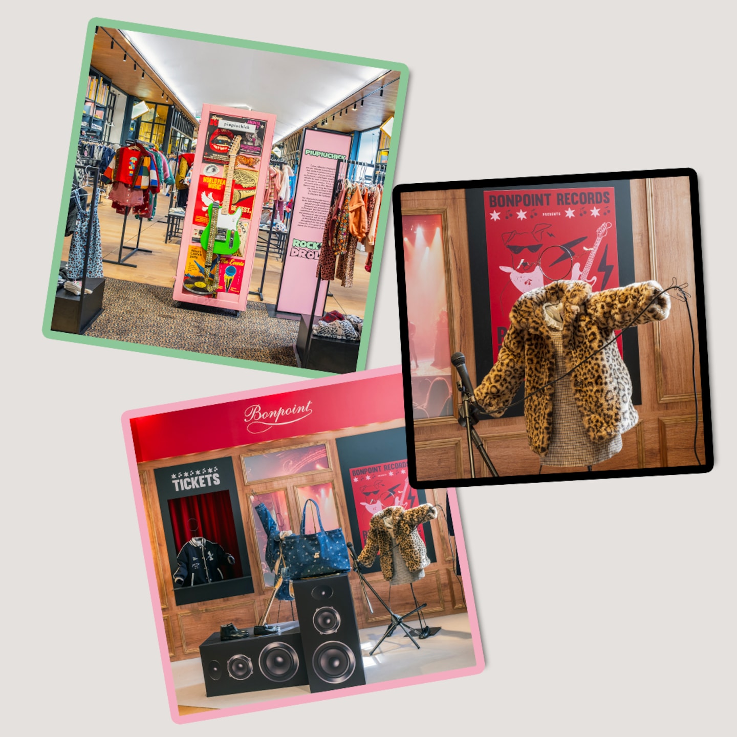 Dans le cadre de l’exposition Rock’n’Drôle, le vestiaire des enfants fait la part belle au courant musical. Parmi les coups de cœur de La Gazette, deux visions : d’un côté, Bonpoint, Maison parisienne iconique fondée en 1975. Connue pour son élégance raffinée et ses basiques intemporels, s’amuse à réinventer les codes du rock, entre blousons en cuir, imprimés affirmés et touches de noir. Pour un style classique sans être trop sage. De l’autre, Piupiuchick, Maison portugaise née en 2012, revendique un vestiaire rétro et joyeux avec sa collection I’m with the band*, où salopettes, carreaux et couleurs vives composent une garde-robe rock assumée.