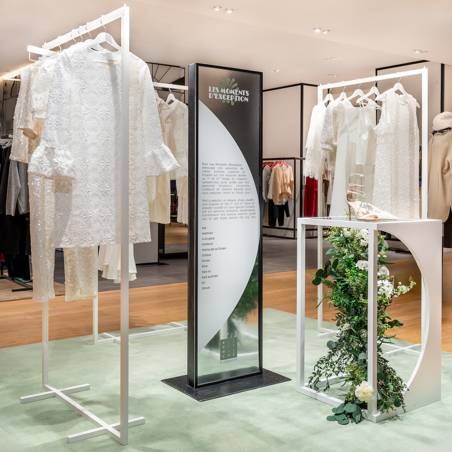 Jusqu'au 21 avril, découvrez notre pop-up « Les Moments d’exception » installé sur deux étages. Des espaces dédiés, poétiques et festifs où retrouver des robes pour dire « oui » et des pièces de caractères. De quoi marquer les esprits le jour J jusqu’au bout de la nuit. Au 24, rue de Sèvres, la fête est déclarée et vous êtes toutes conviées !
