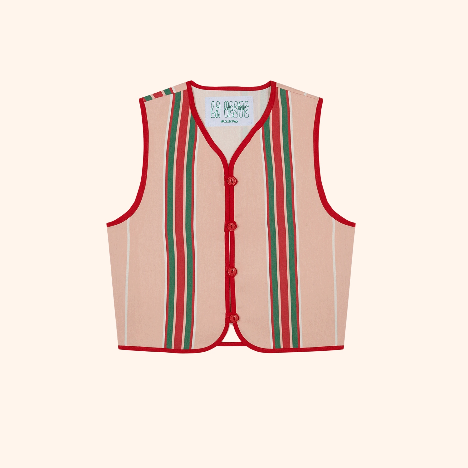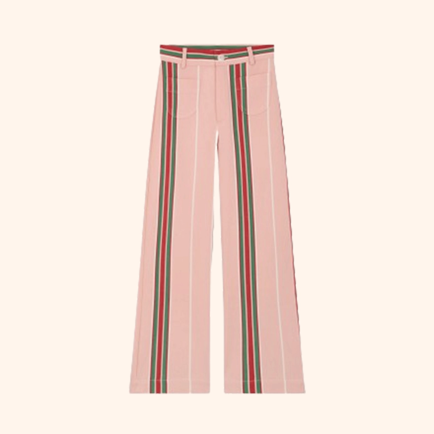 Le choix de La Gazette : un ensemble pantalon et veston tricolore estampillé La Veste, à porter par-dessus une chemise blanche. Pour accessoiriser le tout, on mise sur un panier en feuilles de palmier tressées et aux anses colorées.