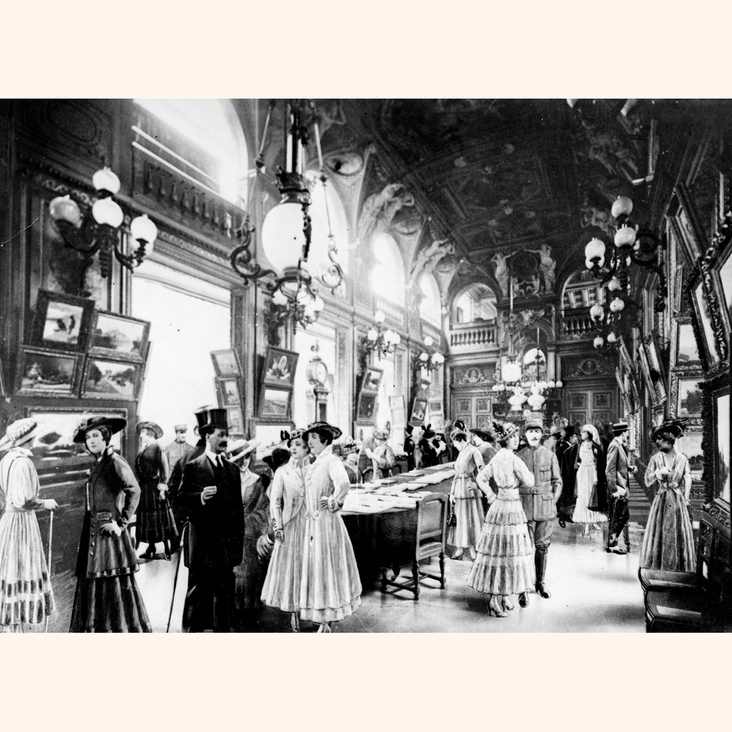 L’histoire à retenir : En 1872, il existe un lieu où l’on refait le monde, tout en découvrant les dernières actualités qui l’agitent. Le Bon Marché met un Salon de lecture à la disposition des visiteurs : dans cet espace, on peut lire la presse nationale et internationale, mais aussi écrire sa correspondance, confortablement installé. À partir de 1893, date à laquelle le Salon côtoie géographiquement la Galerie des tableaux, la clientèle peut y admirer les œuvres des artistes refusés du Salon officiel de l’Académie des Beaux-Arts. En effet, Aristide et Marguerite Boucicaut, les fondateurs du grand magasin, leur proposent d’y exposer et d’y vendre leurs œuvres, sans prélever de commission. Un lieu dédié aux belles toiles et aux bons mots, qui symbolise le soutien du couple à l’art en général. Les entrepreneurs lègueront d’ailleurs leur collection privée à l'État — des pièces exceptionnelles, dont certaines ont rejoint les collections du Musée d’Orsay, à Paris.