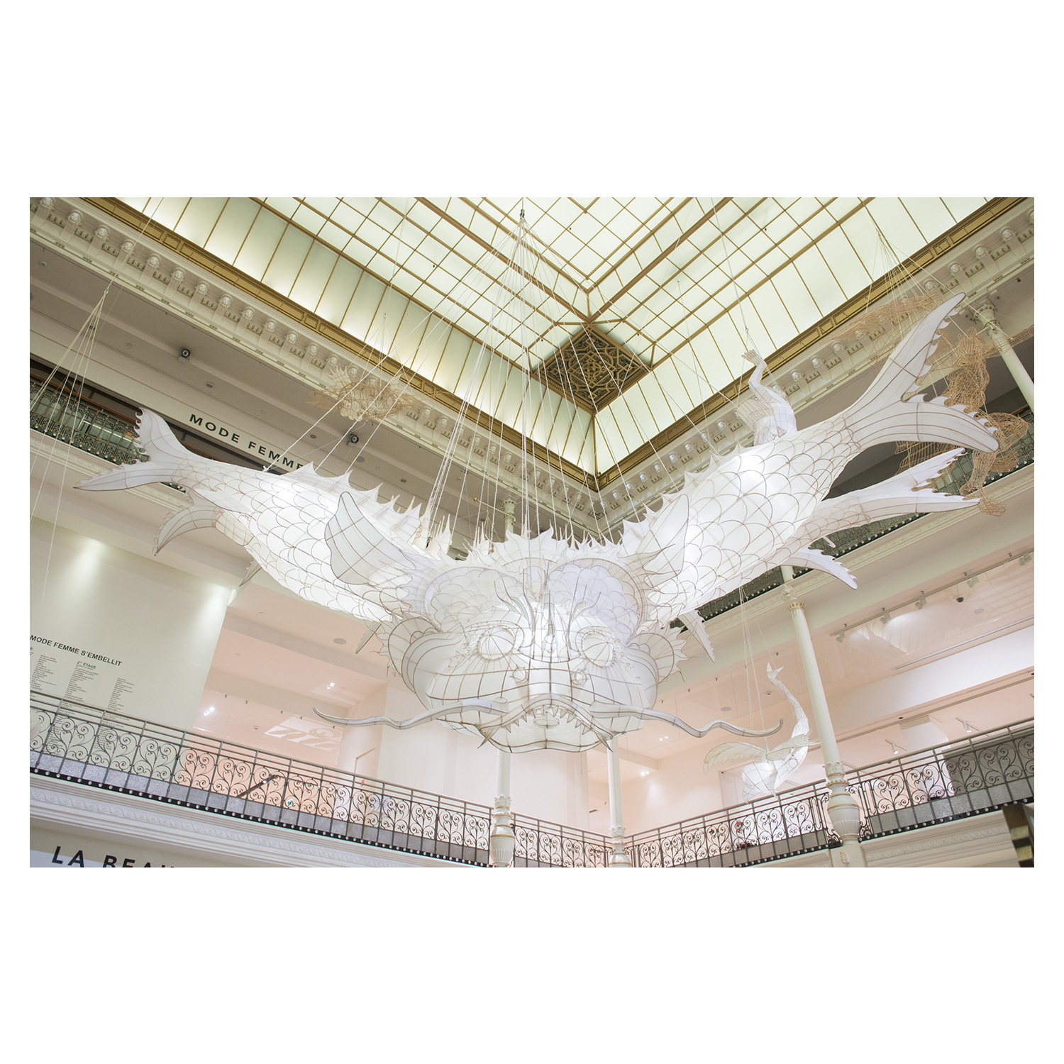 L’artiste chinois Ai Weiwei s’inspire du Shanhaijing à l’occasion de son exposition « Er Xi » qui signifie aire de jeux. Ce livre des Monts et Mers est un ensemble de contes épiques et de légendes populaires, imaginés dans l’Antiquité chinoise, racontés au plus jeunes depuis plus de 2000 ans. L’artiste décline une trentaine de ces créatures mythologiques fantastiques, dont Heluo qui se compose d’une tête et de dix corps. La sculpture est conçue à la manière des cerfs-volants traditionnels, faits de bambou et de papier de soie.