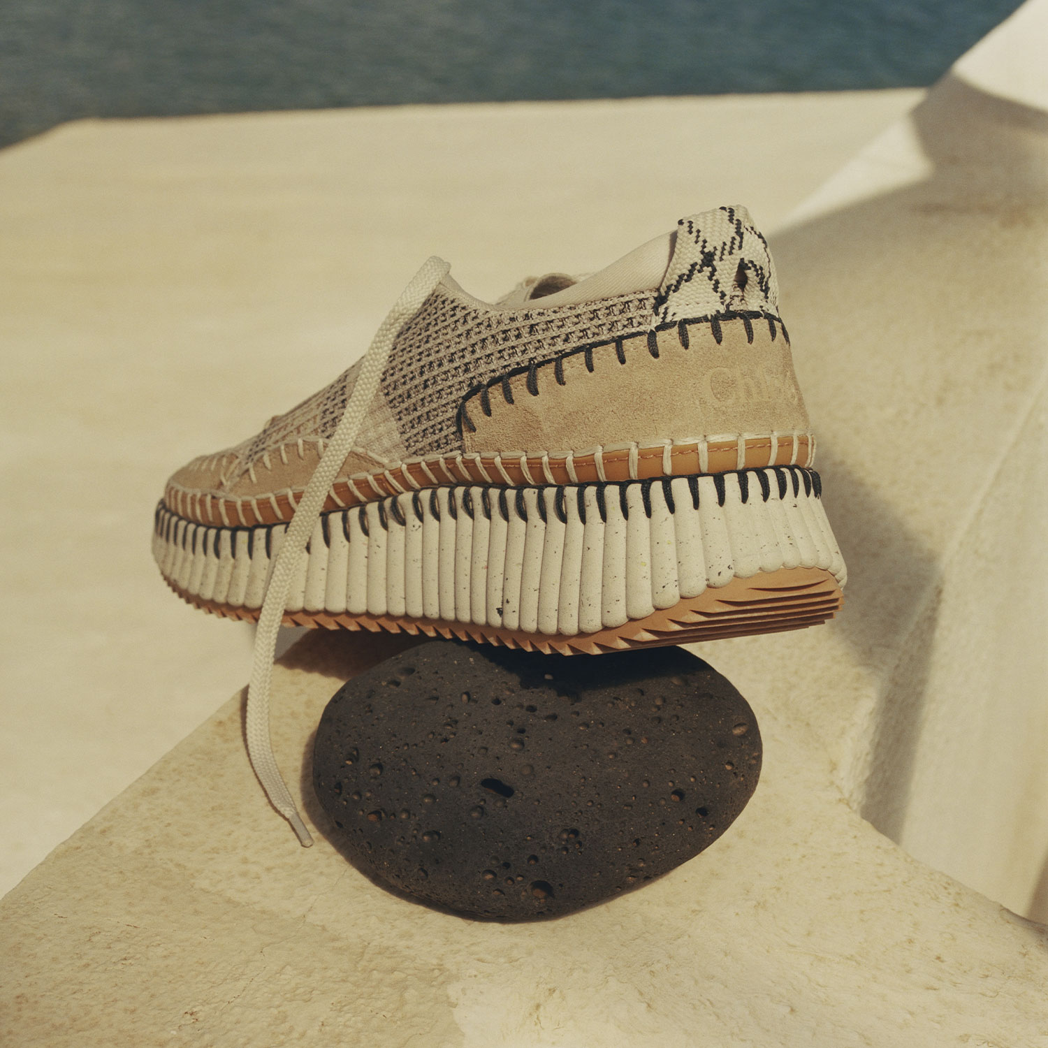 La basket Nama de Chloé est le reflet des engagements de la Maison pour réduire son impact sur l’environnement. Fabriquée à partir de 40 % de matières recyclées, la paire émet 35 % de gaz à effet de serre en moins et consomme 80 % d'eau en moins que sa prédécessrice, la sneaker Sonnie.
