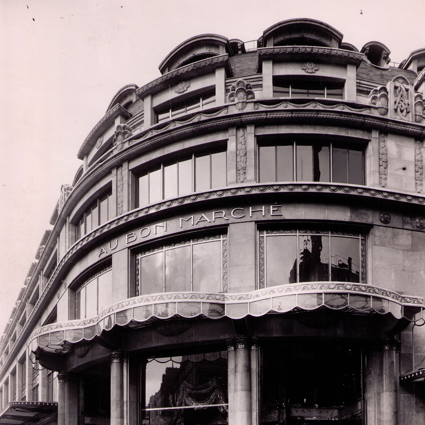 En 1912, une certaine effervescence agite les rues du Bac et de Sèvres : Le Bon Marché y inaugure ses Nouveaux Magasins, une annexe à deux pas de ses premières adresses. À la suite d’un incendie survenu en 1915, le bâtiment est reconstruit par l’architecte Louis-Hippolyte Boileau, réputé pour avoir bâti l’hôtel Lutetia et fils de l’architecte du bâtiment principal du Bon Marché. De 1921 à 1923, il érige un immeuble de style Art déco — diminutif de « arts décoratifs ». Dans ce nouvel épicentre parisien, sont présentés le meilleur du mobilier de l’époque — produit par l’Atelier Pomone, atelier d’art du Bon Marché créé en 1922— et un Comptoir de l’Alimentation, qui deviendra des décennies plus tard La Grande Épicerie de Paris. Outre les produits, on y vient aussi pour admirer la bâtisse et son style architectural : tracés rectilignes, formes géométriques et riche ornementation. Un siècle plus tard, découvrez où ce précieux héritage Art déco apparaît dans l’immeuble actuel.