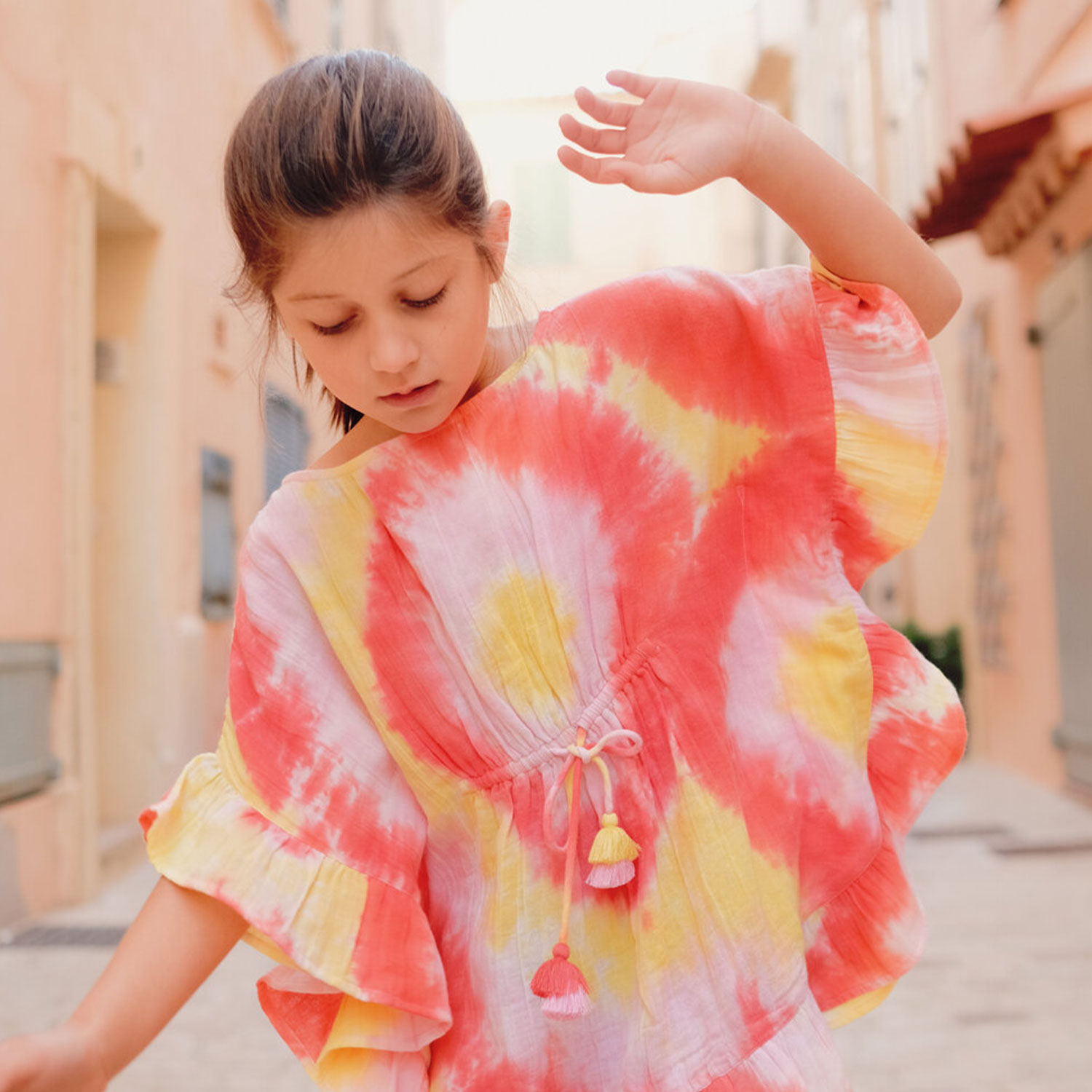 Cotons légers, imprimés exclusifs et pièces pigmentées : la mode enfantine se met aussi à l’heure d’été. Le caftan Lison Paris, best-seller de la marque, accumule les détails avec style : entre pompons colorés et larges manches volantées. Cette pièce, très pratique, se porte sur un maillot ou un short et se glisse facilement (et sans prendre trop de place) dans votre valise.