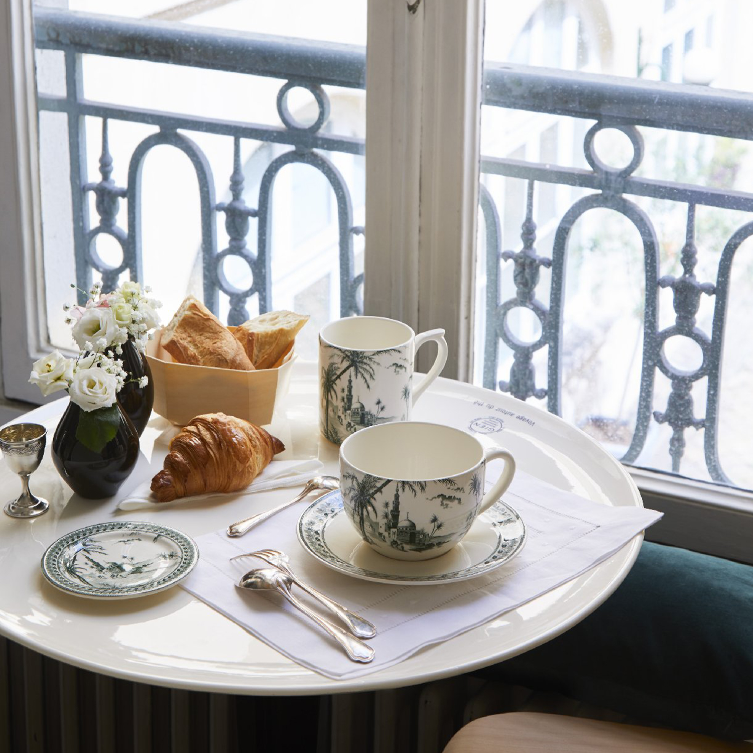 À votre table, tous les sens sont en éveil avec des objets que l’on aime disposer délicatement. Le beurrier en porcelaine Mattina de Alessi ajoute une touche colorée tandis que les jolies tasses et assiettes Gien vous transportent à bord de l’Orient Express. Un service de table aux allures élégantes et raffinées qui vous permet de voyager de bon matin.