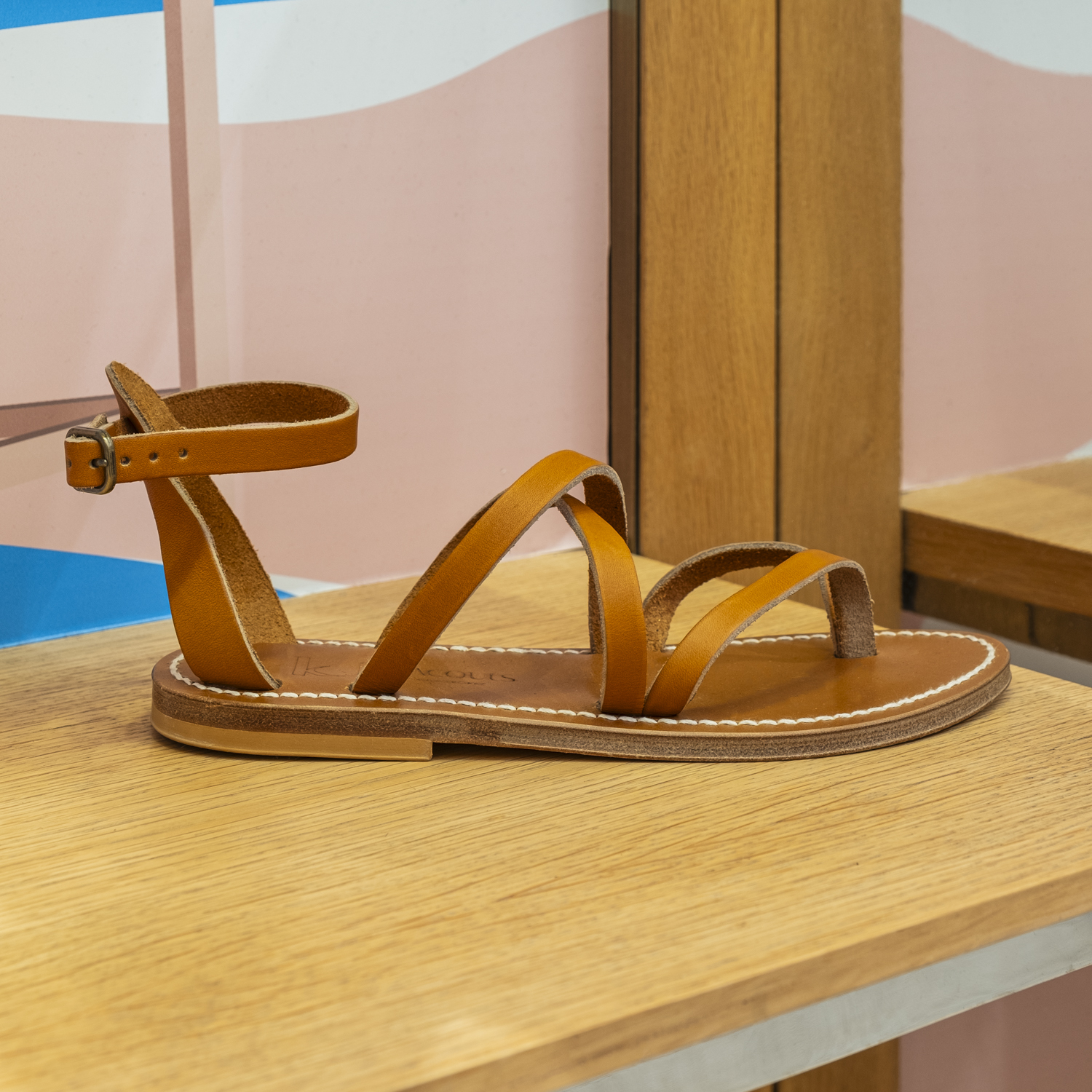 C’est en 1933, au cœur de la ville lumineuse de Saint-Tropez, que l’histoire de K.Jacques débute. Au détour de la rue Allard, Jacques et Elise Keklikian accueillent dans leur petite boutique les passants de la côte d’Azur et leur propose des créations faites à la main. Autodidacte, Jacques dessine et fabrique des modèles en cuir pour chausser ses clients avec une paire de sandales à l’élégance intemporelle : les tropéziennes. Epurées et élégantes, ces chaussures estivales sont sublimées par des matières nobles telles que le cuir certifié Leather Working Group, sourcé auprès des plus grandes tanneries d’Italie et d’Espagne.