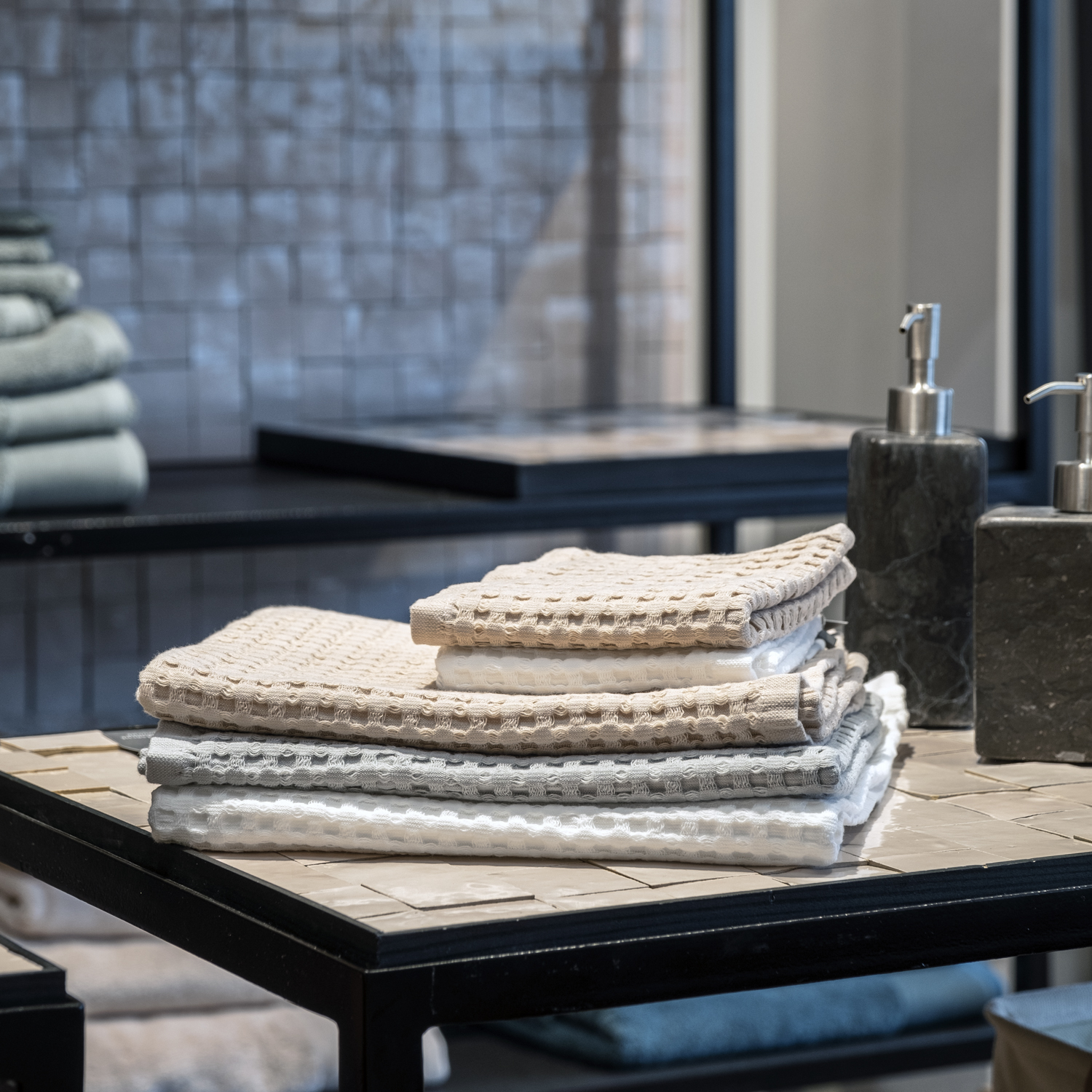 Après une journée passée en bord de plage, le peau salée et les cheveux iodés, direction la salle de bain pour votre rituel beauté. Un moment de détente pendant lequel on vient se blottir dans une serviette de bain, douce et confortable, signée Le Bon Marché Rive Gauche. Confectionnée au Portugal, la collection de linge de bain en nid d’abeille est synonyme de légèreté et durabilité. Serviettes et peignoirs sont certifiés GOTS, un label qui inclut des critères environnementaux, sociaux et sanitaires. Les textiles sont fabriqués à partir d’au moins 70 % de fibres naturelles biologiques, éliminant ainsi tous les composants toxiques et polluants.