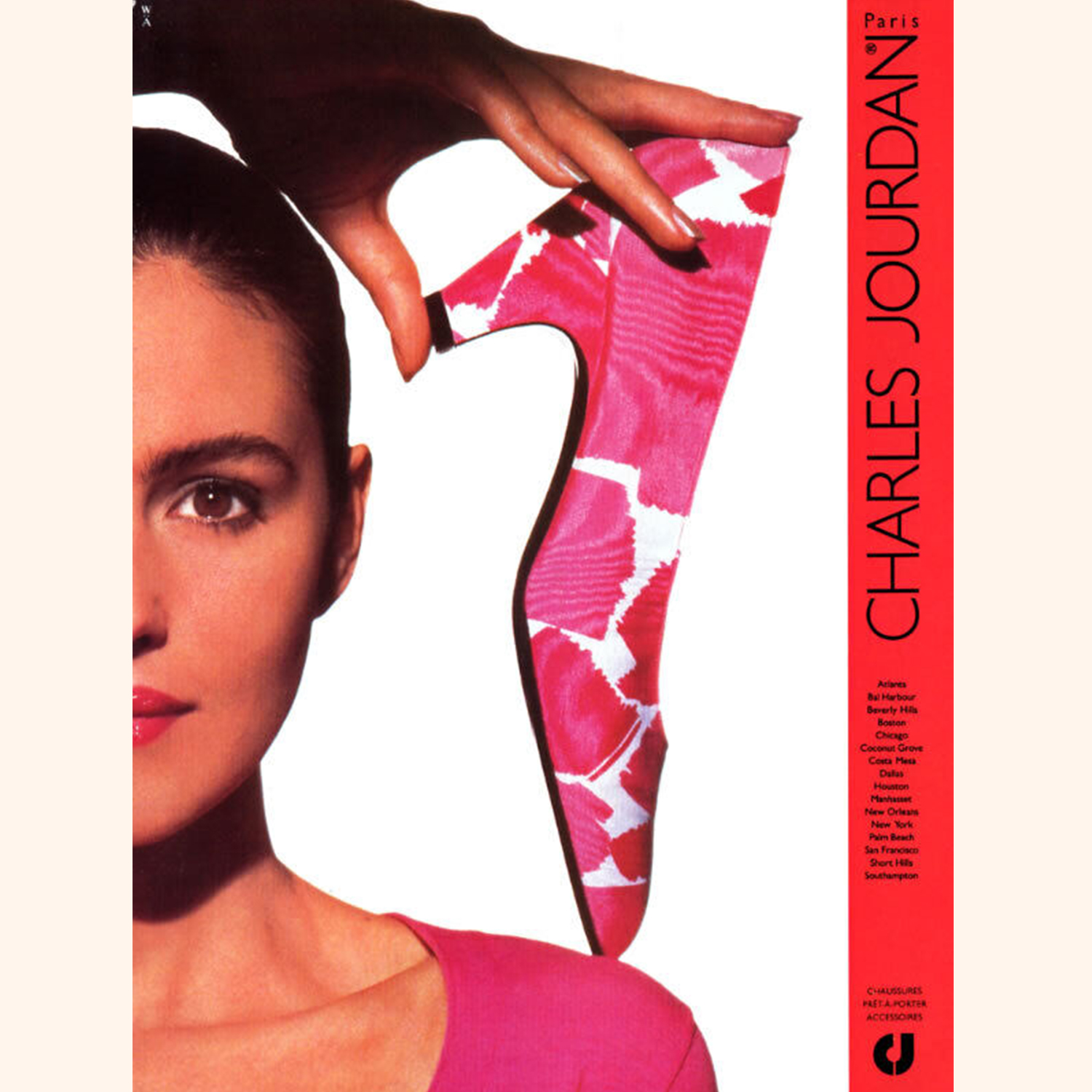 Quand un ponte de la chaussure rencontre un photographe à l’univers surréaliste, cela donne des campagnes publicitaires cultes. Dans les années 1960, Guy Bourdin immortalise les créations de Charles Jourdan : des images irrévérencieuses, qui porteront la marque à son apogée. Depuis, la griffe conserve le goût du pas de côté et travaille avec des artistes comme Sylvain Oger. Cette dernière traduit, pour la collection estivale, son sens de la démesure (contrôlée).