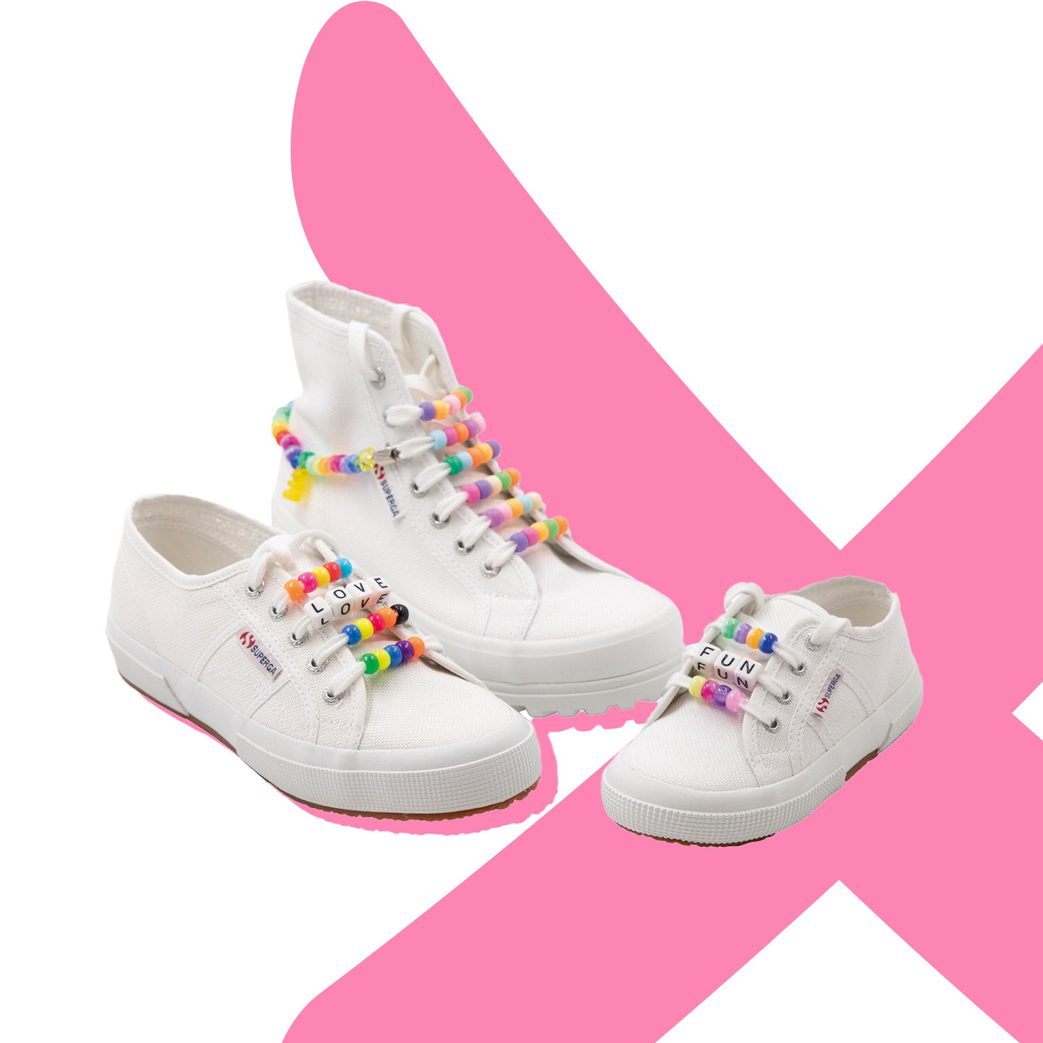 SUPERGA x SIMONE A BORDEAUX, baskets en coton naturel, modèle enfant, à partir de 49€, modèle adulte, à partir de 60€, bijoux de sneakers, à partir de 29€.