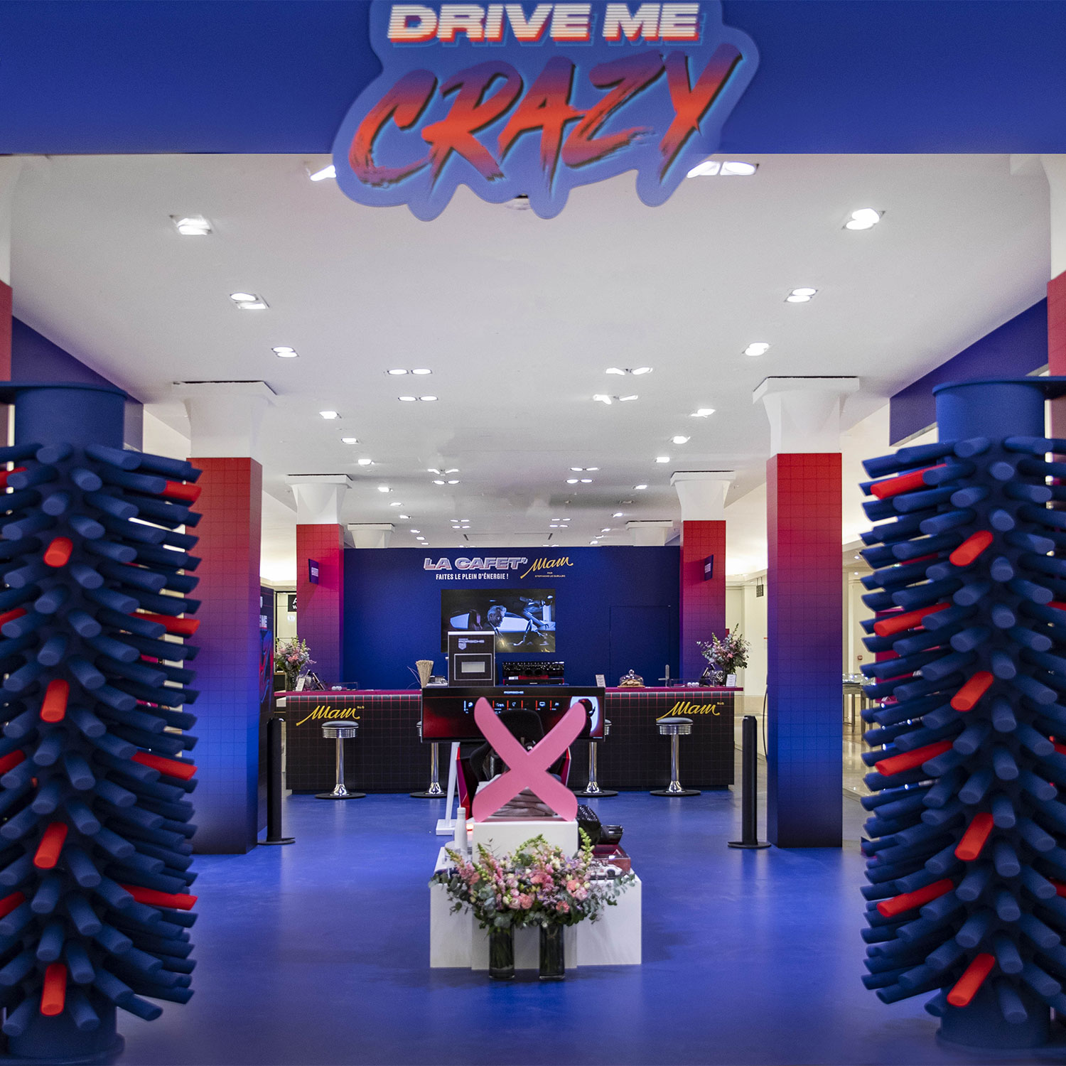 De ce choix scénographique audacieux naît un espace expérientiel et lifestyle revisitant les codes de la station-service... en version électrique. Depuis l’entrée par les immenses rouleaux inspirés des « Car Wash » jusqu’aux vitrines reprenant le design des pompes à essence vintage, la scénographie a été pensée pour vous immerger dans cet univers aussi surprenant qu’inattendu !