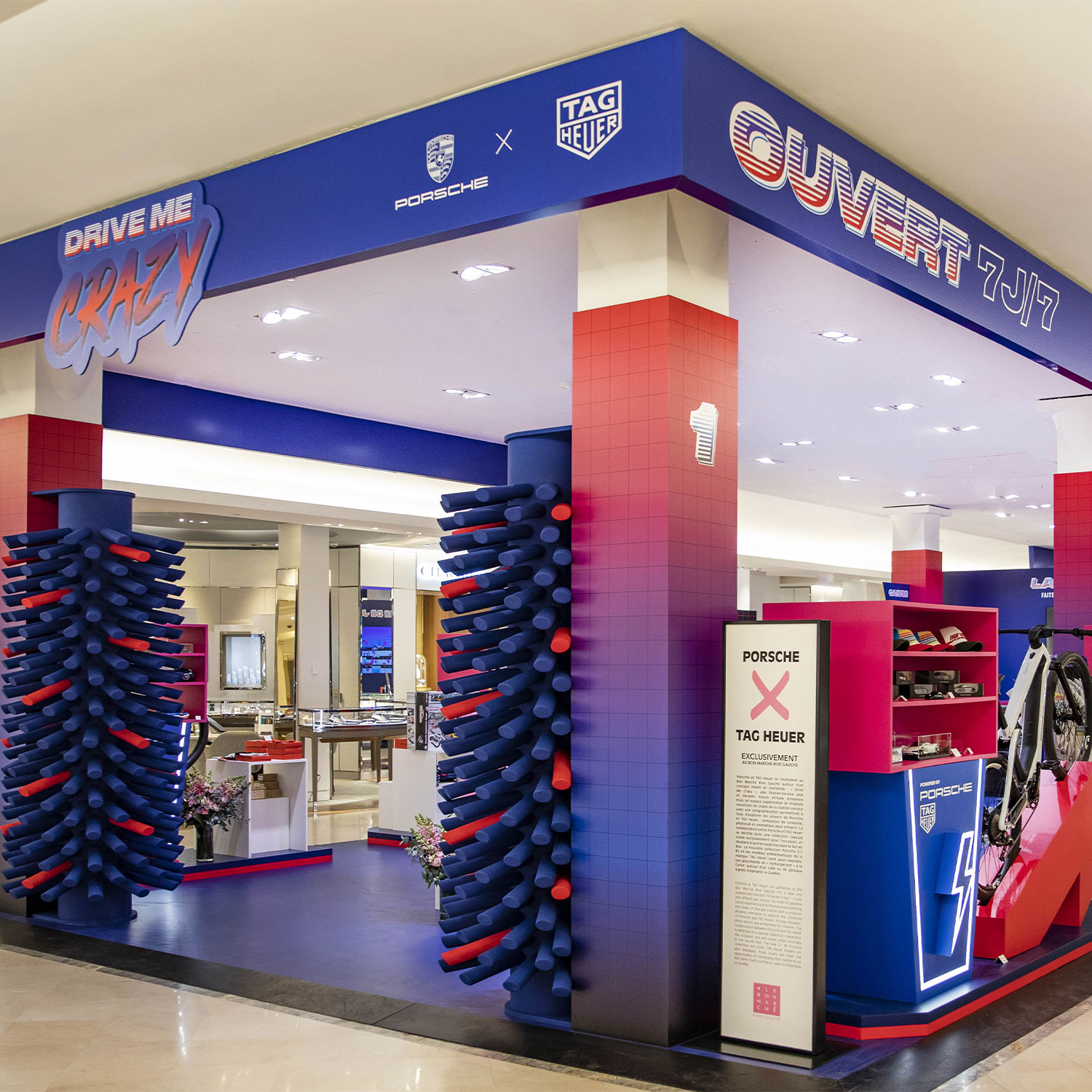 Installé au rez-de-chaussée du Bon Marché Rive Gauche, l’espace « Drive Me Crazy » propose une programmation riche, créative et émotionnelle, pensée pour que toute la famille puisse explorer les univers de Porsche et de TAG Heuer. Circuit de course en tout genre, pièces d’exception signées TAG Heuer, la Cafet’ pour les gourmands ou encore créations inédites, venez vous plongez dans cet univers totalement crazy !