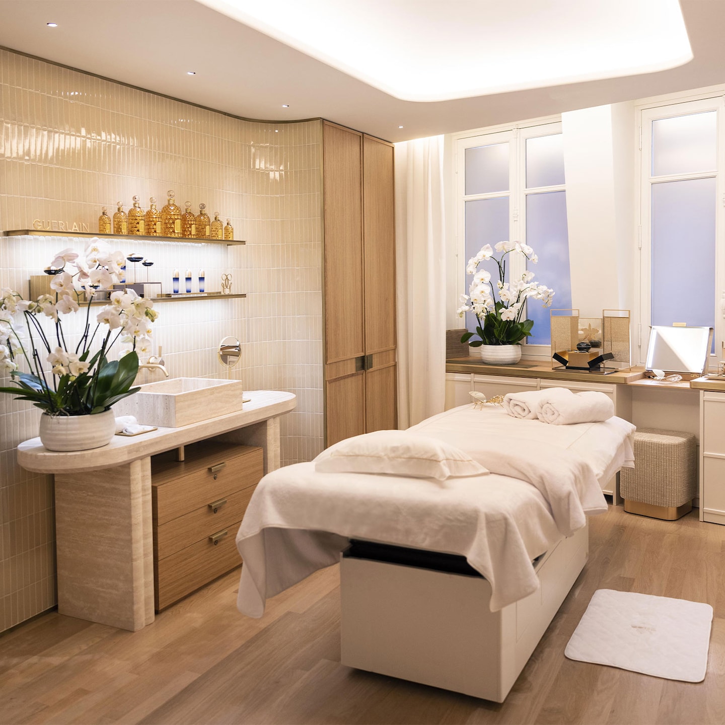 Le soin : Il concentre toute l’expertise de Guerlain, développée depuis plus de 80 ans au sein de ses instituts. Ici, les gestes sont accomplis avec la plus grande précision pour tonifier le visage. Le secret ? La combinaison d’un soin anti-âge, du Reverse Skincare (une routine inversée pour mieux faire pénétrer les actifs) et l’utilisation d’une lampe LED.