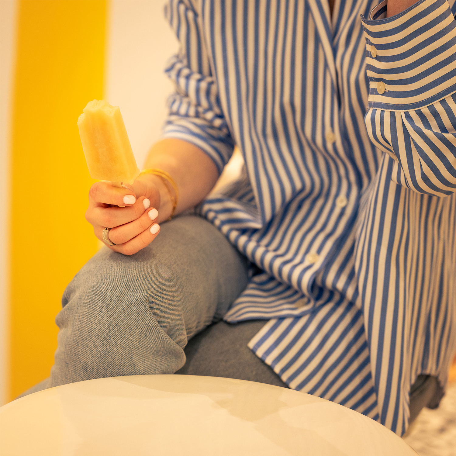 Nous avons installé un bar pour vous rafraîchir avec des saveurs très spéciales. Des glaces, des citrons givrés et des limonades concoctés au collagène. L’idée : vous faire déguster des compléments alimentaires de manière ludique et inattendue.