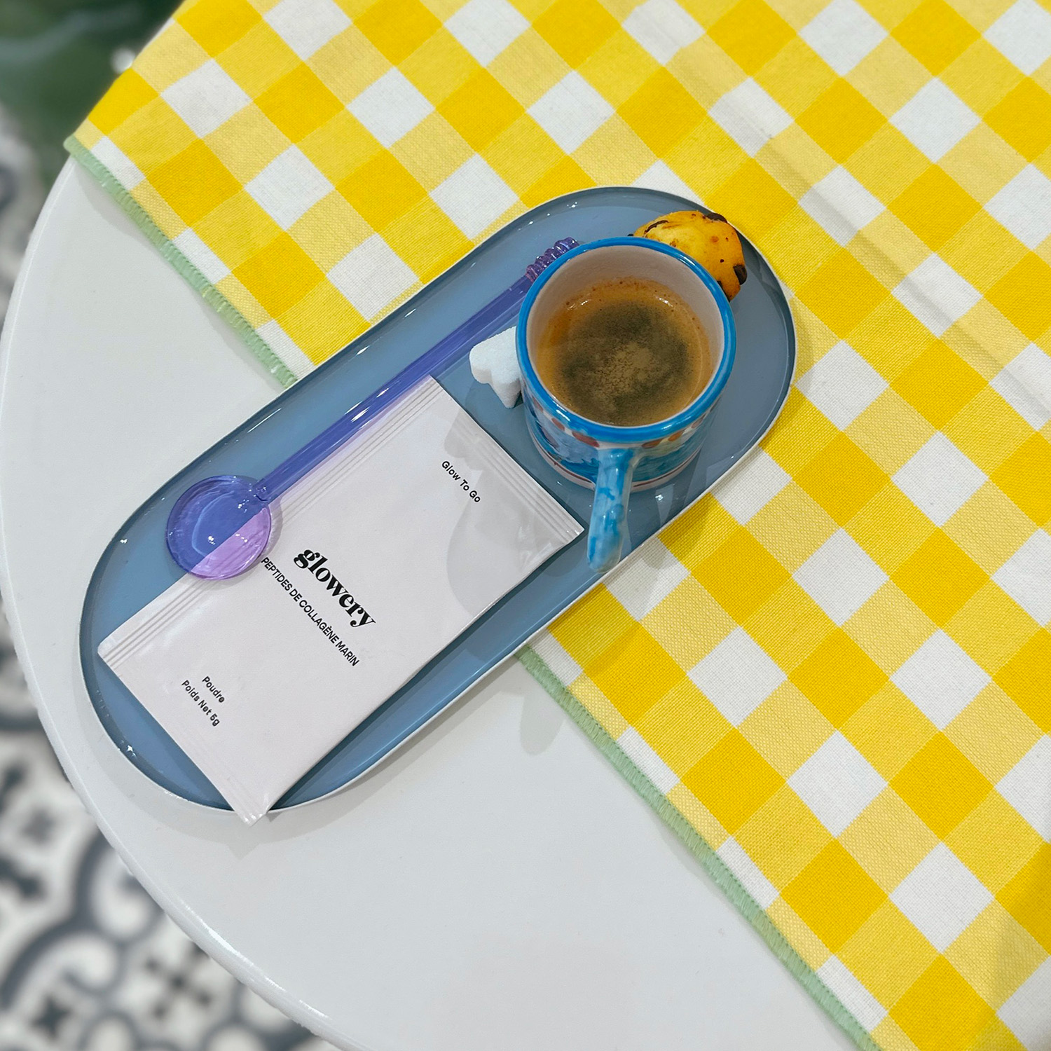 Ce mois-ci, Alexandra Kolasinski, la fondatrice de Glowery, nous accueille sur son espace, autour d’un insolite bar à collagène. Jusqu’au 27 août, son label de nutri-cosmétique démontre, lors d’un pop-up gourmand, tous les bienfaits de la protéine. On y retrouve les produits phares de la marque, mais également des sorbets et une (excellente) limonade. Le tout à base de collagène, bien sûr.
