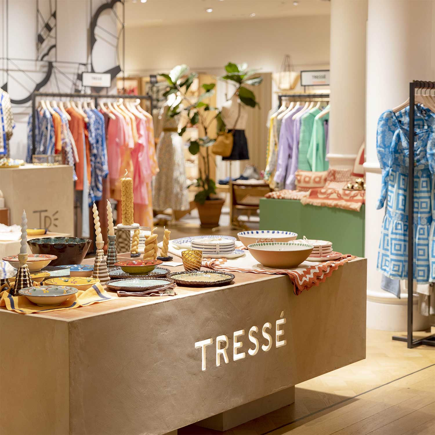 Des souvenirs de voyage. Les produits imaginés par Tressé sont inspirés de ce que chacun pourrait ramener dans ses bagages. Des vêtements, de la vaisselle, divers objets pour la maison : que des produits empreints d’un savoir-faire local. Chaque saison, nous célébrons un pays ou une région coup de cœur.