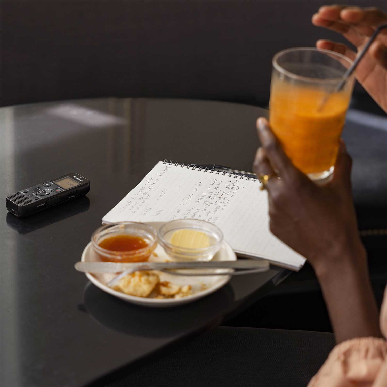 — Après s’être assise, Ketzia passe sa commande sans consulter la carte. En amatrice du café Rose Bakery, elle sait déjà ce qu’elle veut. Une citronnade bien fraîche accompagnée de scones nature.