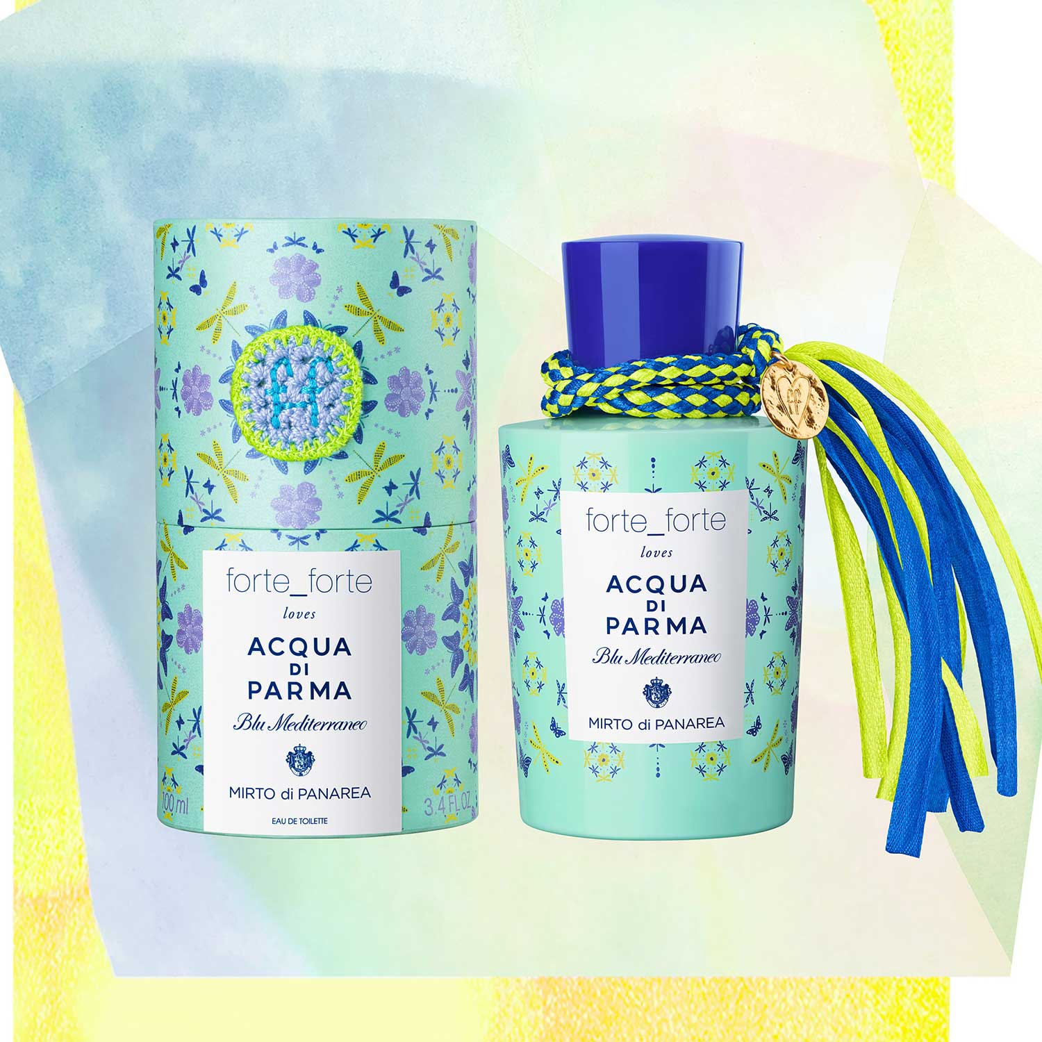 Qui célèbre la dolce vita italienne. Avec la fragrance Forte_forte loves Aqua Di Parma, les deux marques italiennes s’unissent le temps d’une capsule. Elles capturent toute la magie de leur pays dans un flacon. La marque de mode a interprété visuellement les notes du grand classique Mirto di panarea avec un dessin qui orne la bouteille de parfum.