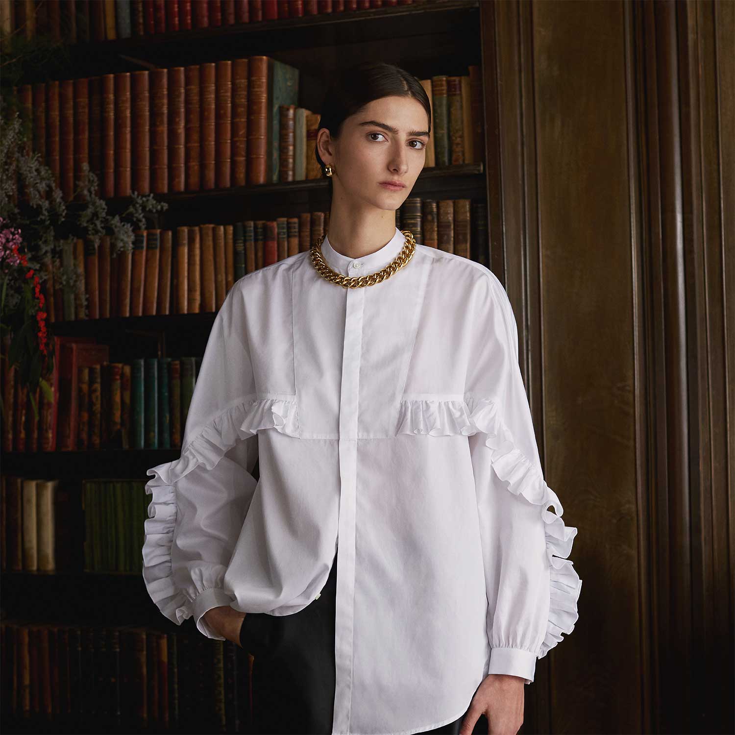 Comment réinventer la chemise blanche ? Une question épineuse à laquelle Bourrienne Paris X répond en réalisant un sans-faute. Le jeune label, lancé en 2017, écrit un nouveau chapitre sur ce basique de la garde-robe. Car plutôt que de courir après la nouveauté, la marque ancre sa proposition stylistique dans l’Histoire.