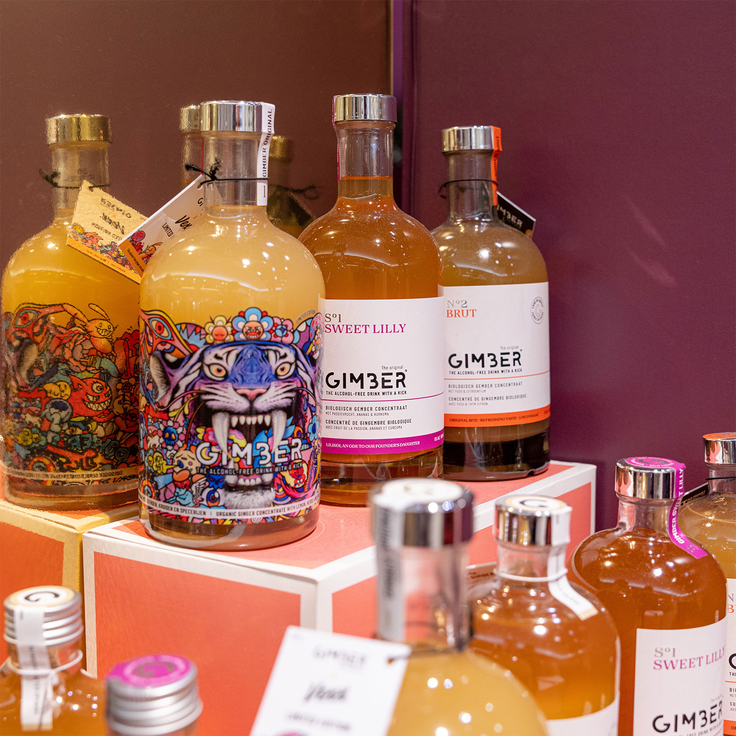 Les variantes : une dégustation de boisson au gingembre Gimber, une confiture de Noël marron et clémentine de La Grande Épicerie de Paris et une boîte de thé noir d'Assam de Conservatoires des Hemisphères.