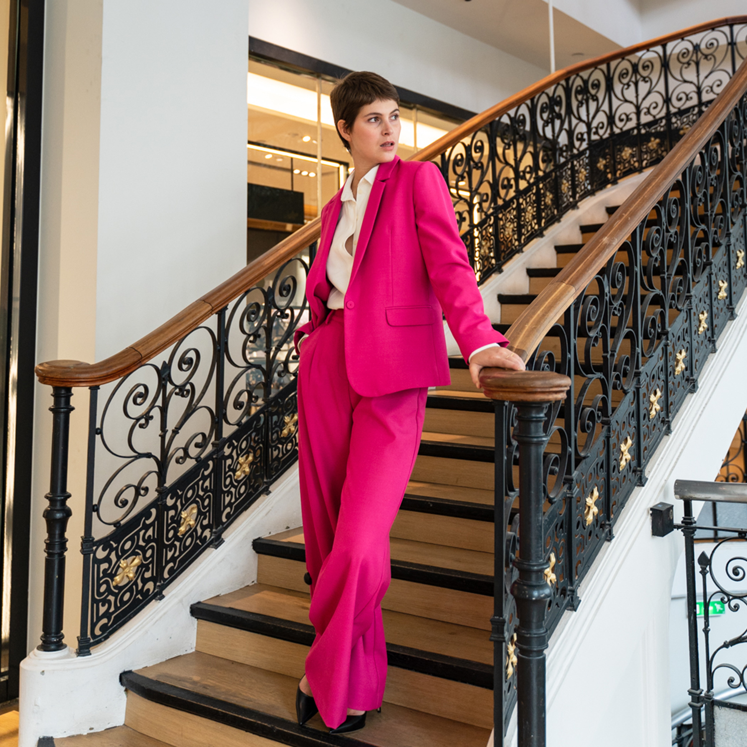 Manteau en laine, costume rose fuchsia ou encore chemisier en soie : chaque étoffe de la collection devient une pièce singulière et vous confère un look unique.
