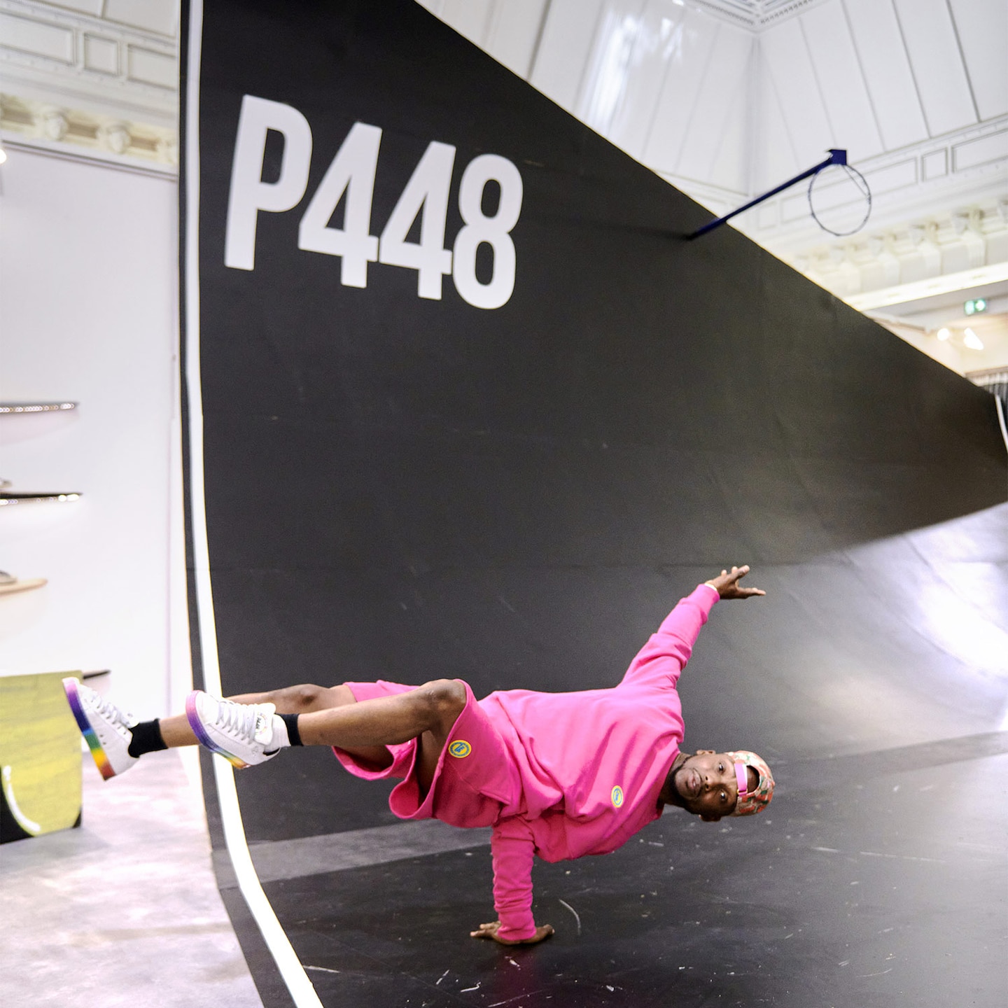 Pour l'ouverture de cette nouvelle boutique, P448 a imaginé avec Le Bon Marché un espace aux allures de terrain de basket-ball et de skatepark. Un lieu unique et éclectique qui met en lumière les dernières sneakers de la marque mais également une série de produits complètement inédits.