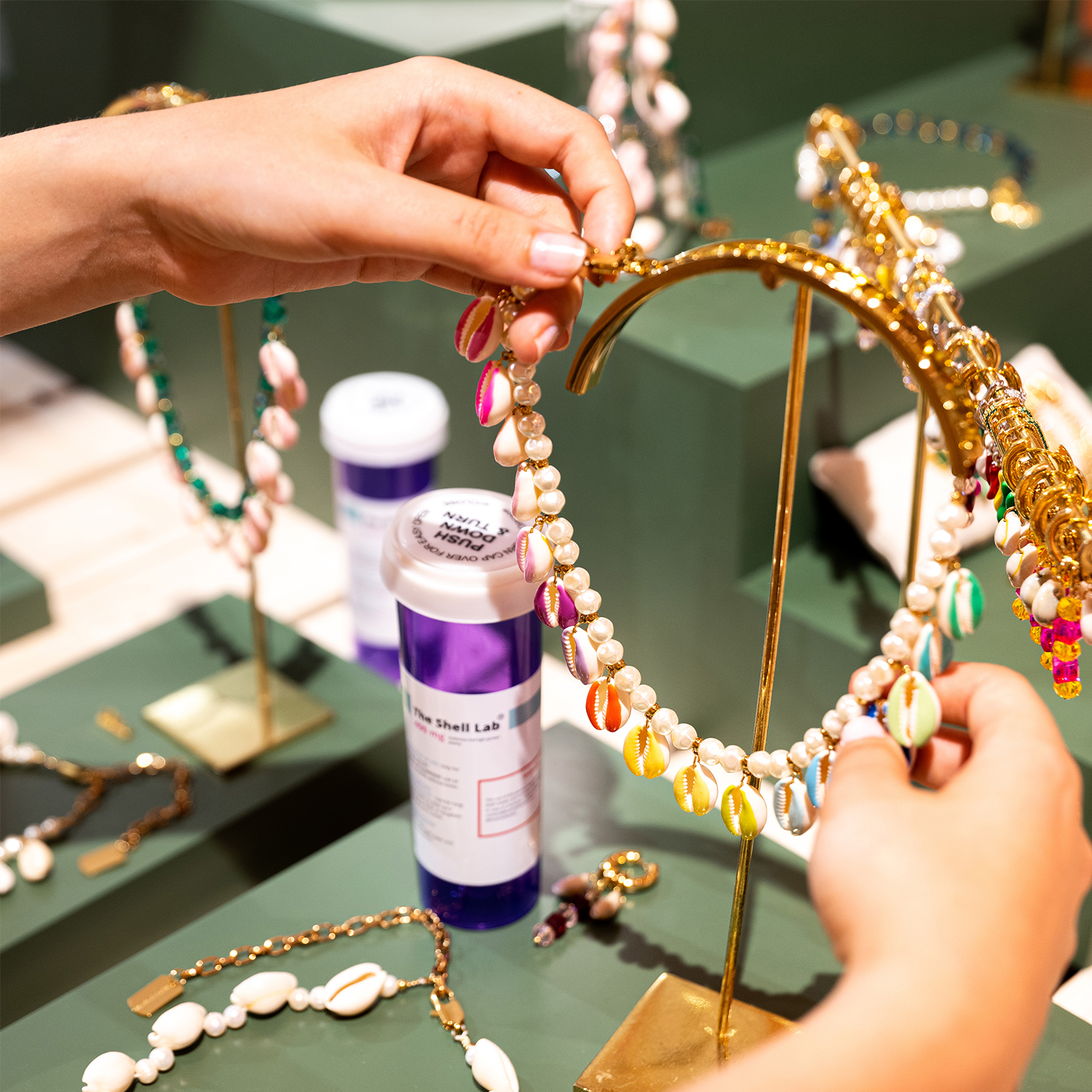 « Ce collier de coquillages est le must-have de l’été, déjà adopté par Gigi Hadid et Clara Berrey. Coup de cœur pour son packaging original sous forme de boîte à médicaments accompagnée de sa prescription ! »