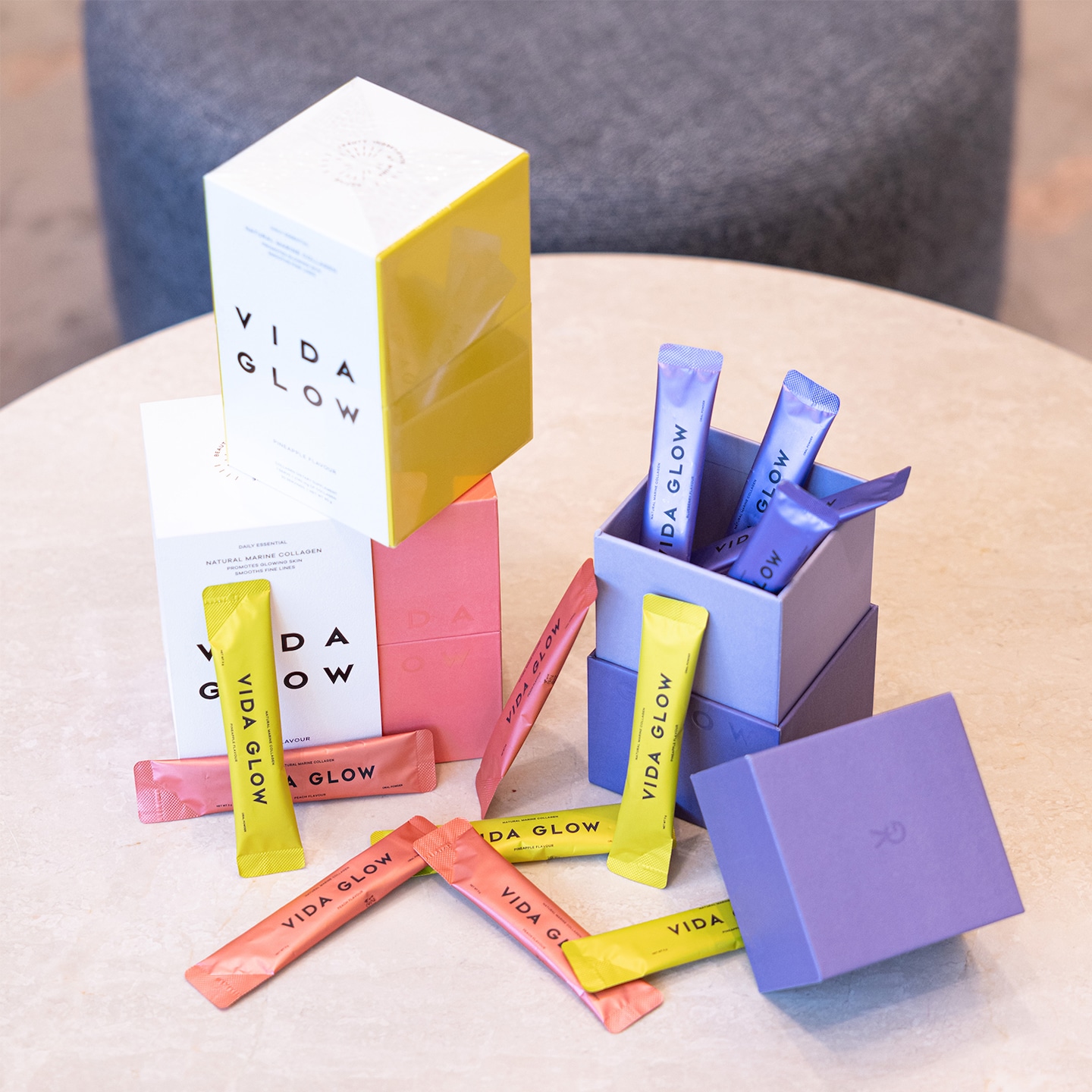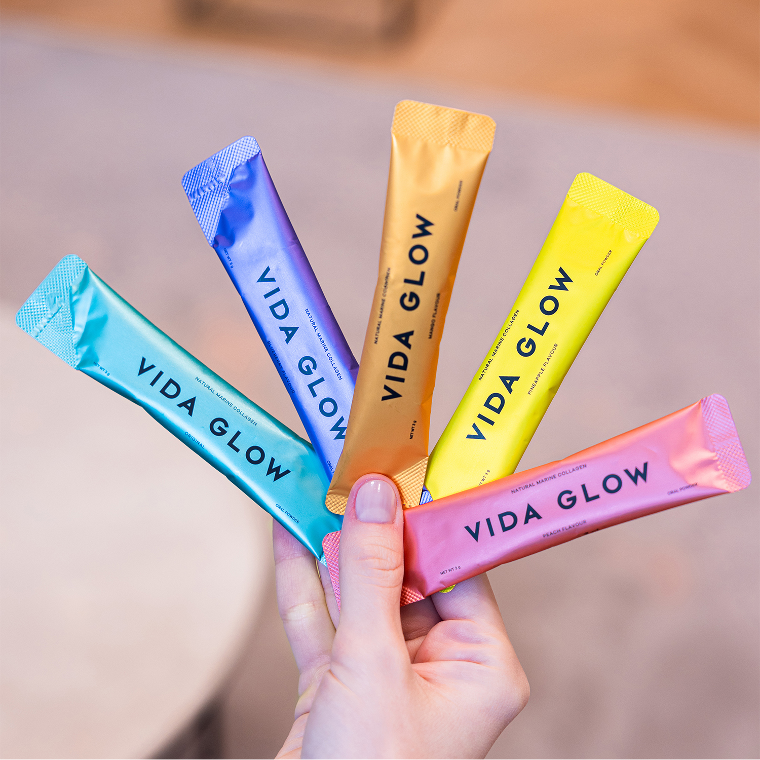 Redonner de l’éclat au teint terne, repulper la peau, fortifier les cheveux : ce sont les bienfaits des compléments de collagène… pour peu de suivre une cure durant plusieurs semaines. L’accueil réservé à ces produits indique que le résultat est au rendez-vous : on chuchote qu’il s’en vendrait un toutes les quatre secondes dans le monde. Fort de ce best-seller, Vida Glow a depuis enrichi sa gamme.