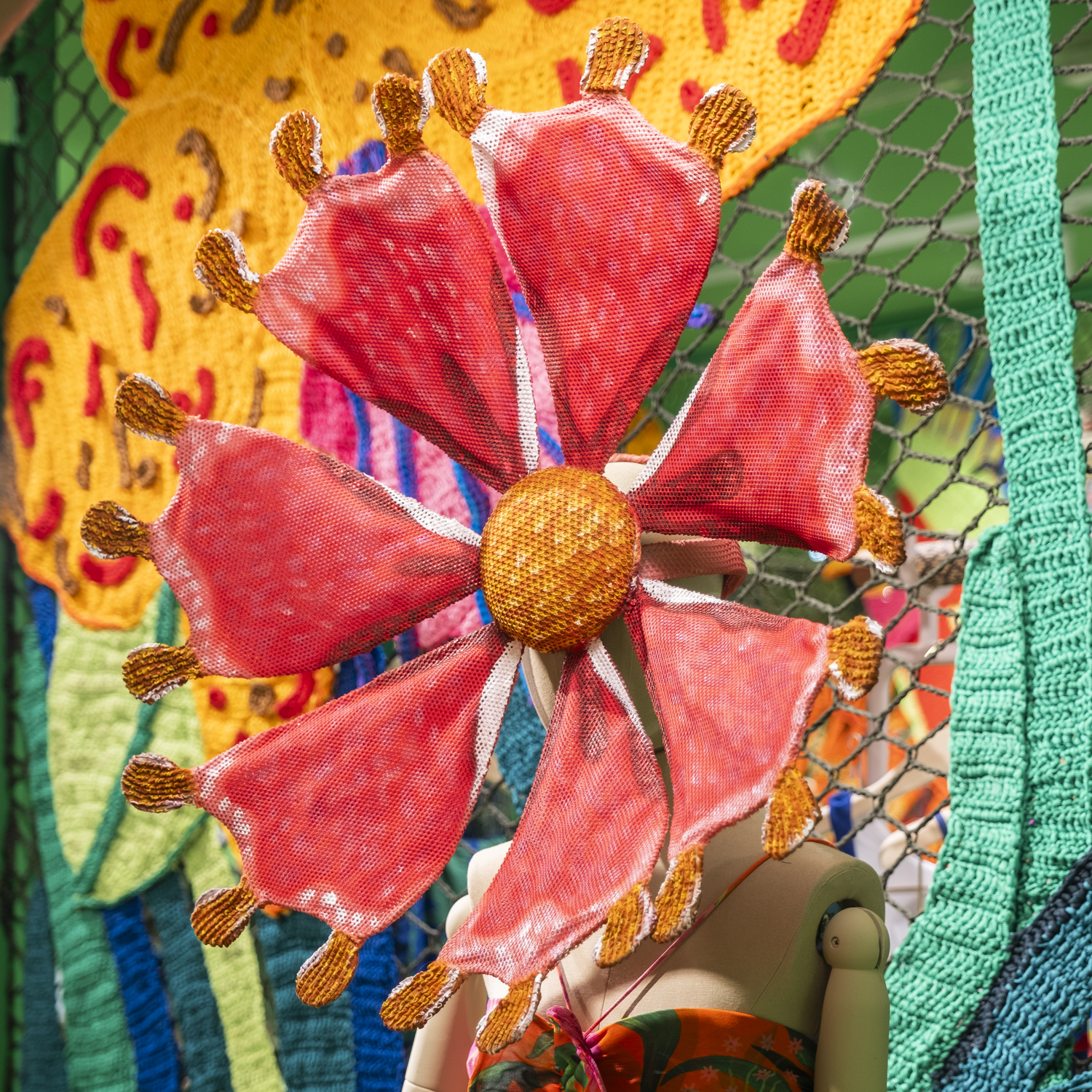 L’artiste imagine ici un univers surréaliste, où le vivant se confond avec les fruits tropicaux sculptés en crochet, les imprimés colorés, les oiseaux XXL et les robes flamboyantes. Un voyage immersif, inspirant et unique de Paris à Rio.