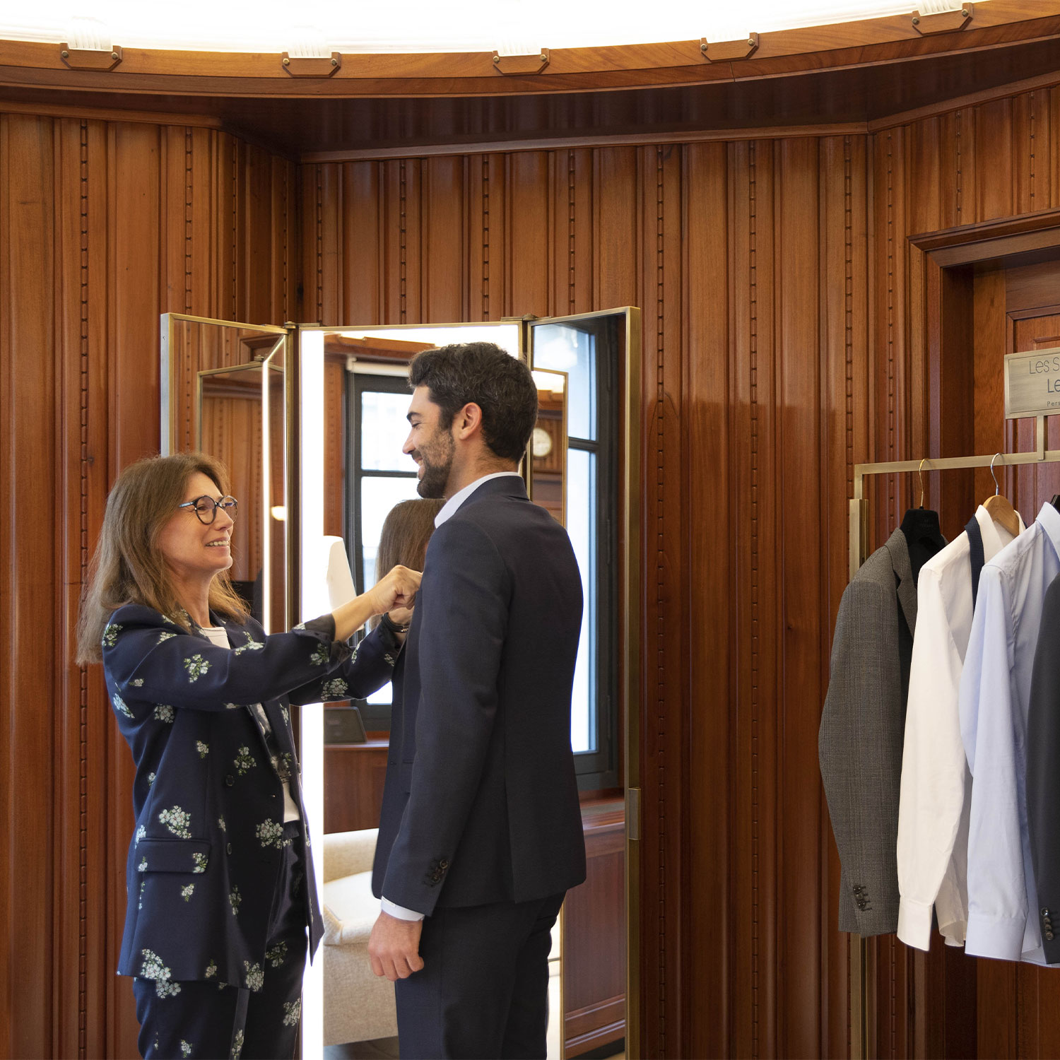 En amont de la séance, j’appelle la personne afin de cerner ses attentes, son milieu professionnel ou l’événement pour lequel elle a besoin d’une tenue. Je réalise ensuite un shopping en boutique. Le Bon Marché est un laboratoire incroyable de créateurs et de marques plus établies ! J’essaie vraiment de mélanger les pièces et de privilégier la découverte. Une fois la sélection faite, je reçois le client dans nos Salons Particuliers, au troisième étage. On procède alors à l’essayage des silhouettes.